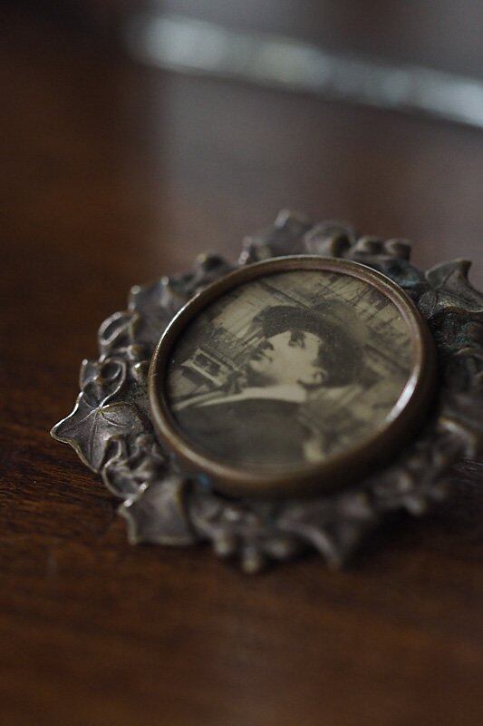 実も楽しむ西洋キヅタという種類の蔓装飾の内、ダンディなハットの男性をおさめている。