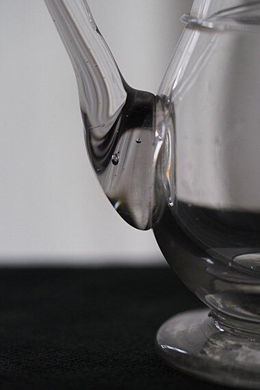 高台の底面中央、ガラスを吹いた時の癖が残っており若干高い為やや座りが悪いです。