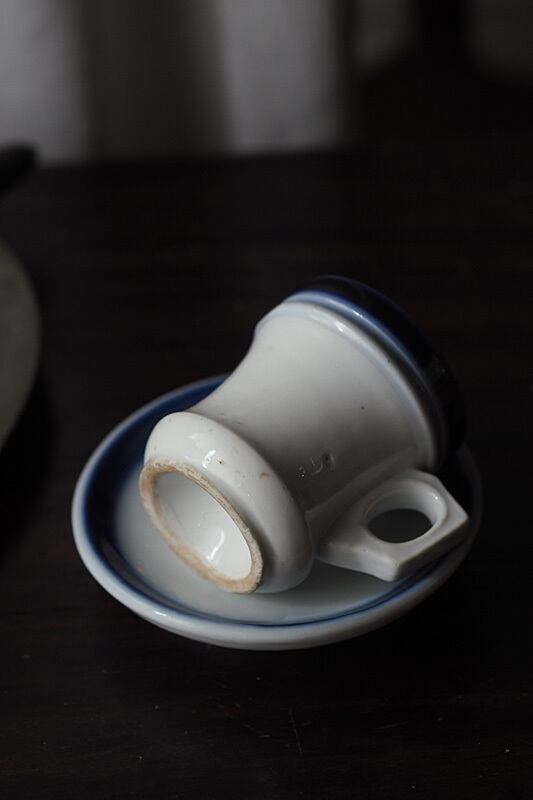 ずしりと重いカップもソーサーも分厚いのは寒い時期コーヒーを冷めにくく暖かい内に飲む為。