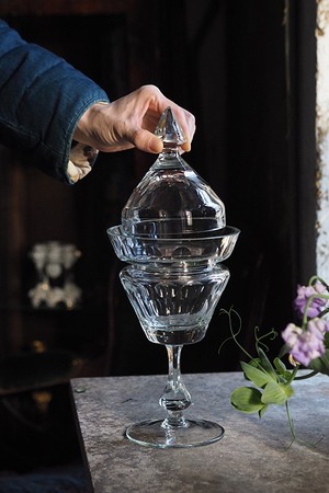 居並ぶガラス食器やお酒にまつわるガラス類と一緒に飾りたい、砂糖菓子を仕舞っていたボンボニエール。