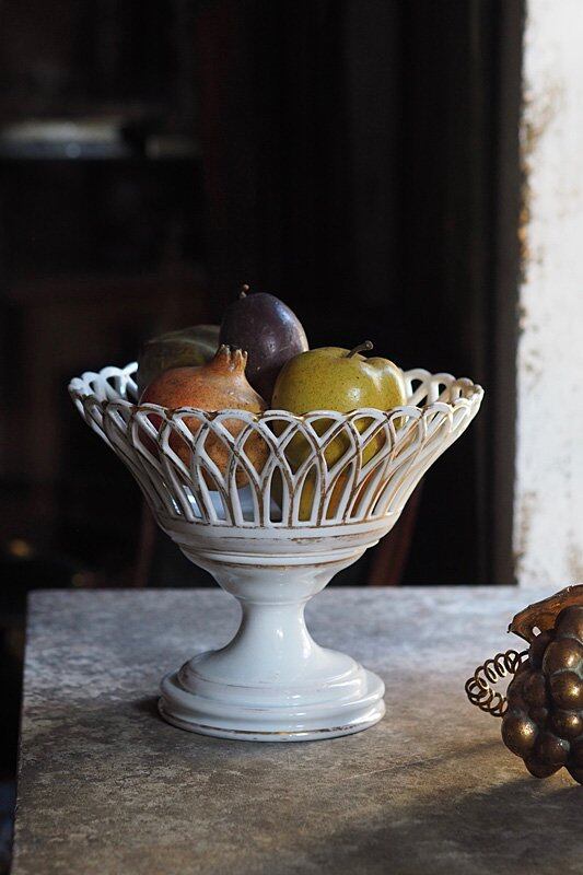 交差した編み込みモチーフから光が漏れて陰影織りなす、フランス リヨンからの果物コンポート。
