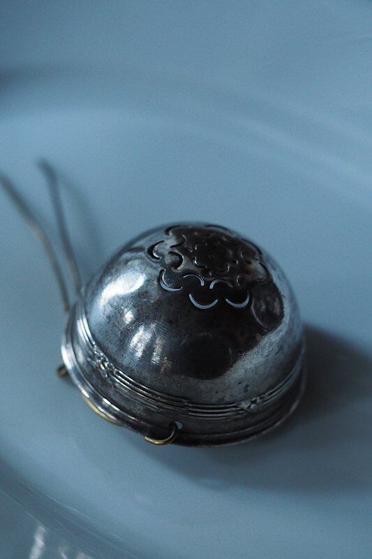 ティーポットの注ぎ口に装着して傾けた時に上手くお茶を濾す考えられた仕様、見た目もエレガント。
