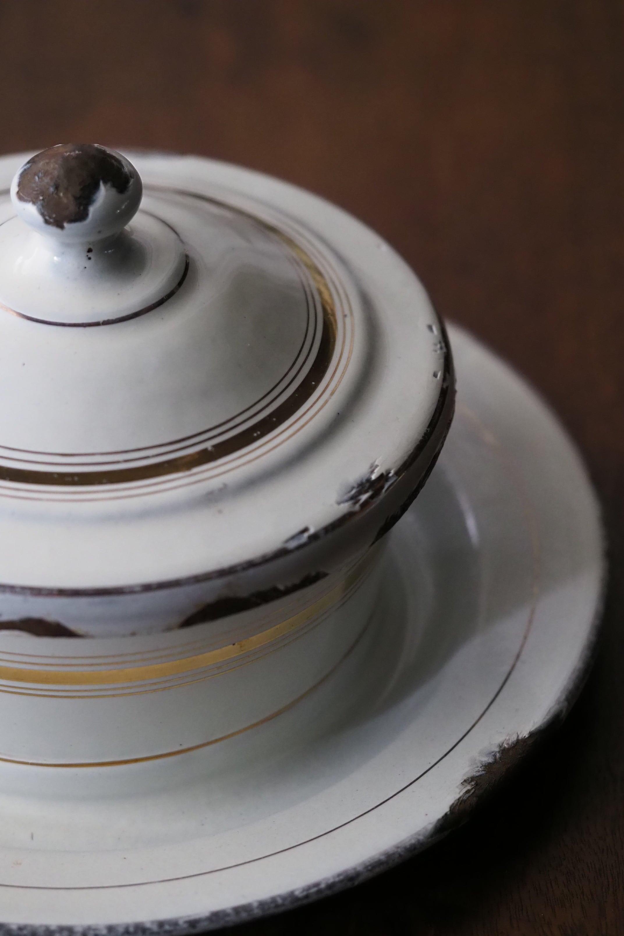冷たく冷やしたバターをそのまま食卓に、バターナイフは一体化した脇のプレートに置ける気の効いたデザイン。