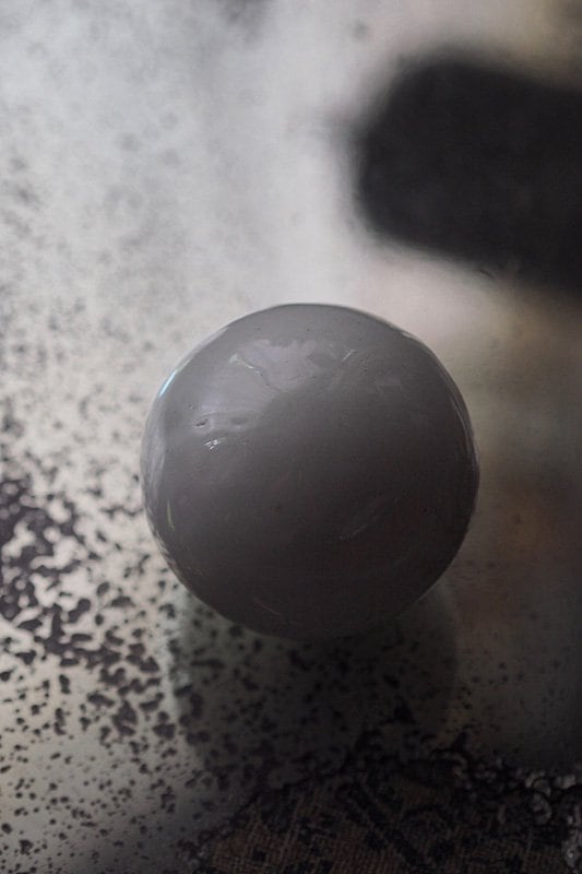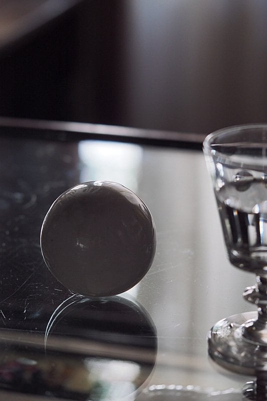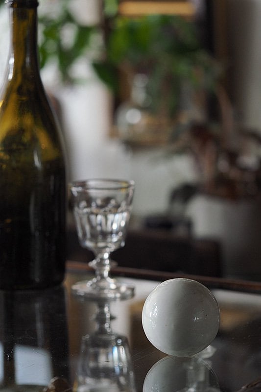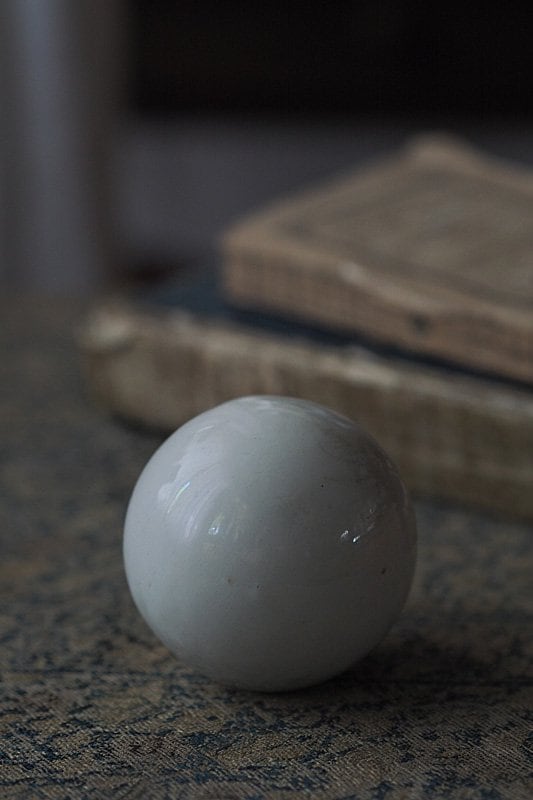球体を回してみると窯傷である小さなエクボや手作業で作られたのだろうな、と僅かながら凹凸ある様相、何かに干渉した擦り傷などが味わいとなってそこに収まる。