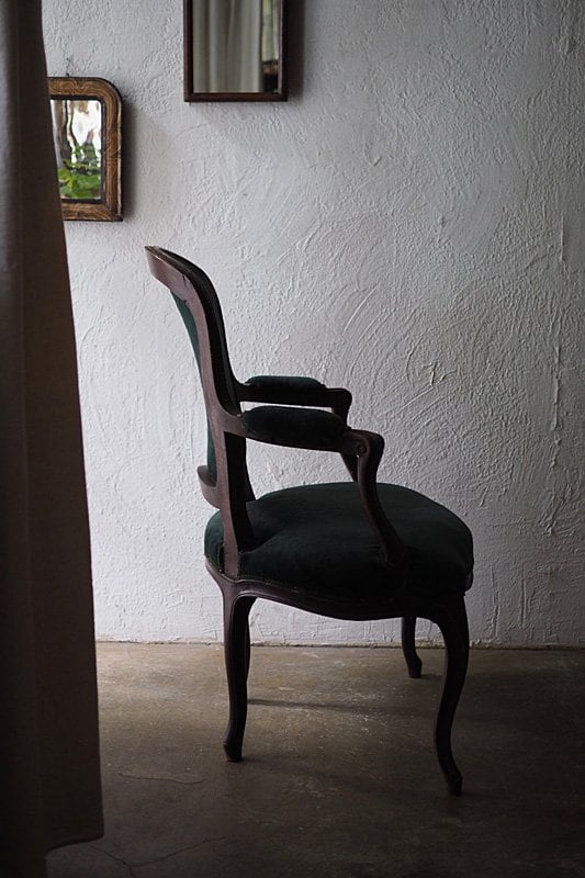 フランス ルイ15世様式ロココの流れを汲んだ、曲線カブリオレレッグのアームチェア。
