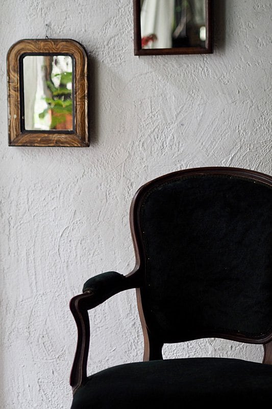 買い付け時既に前生地は剥がされ下地の状態で見つけまして、きっと流行したライトグレーやクリーム色の淡色サテン生地で張られていたのだろうと。