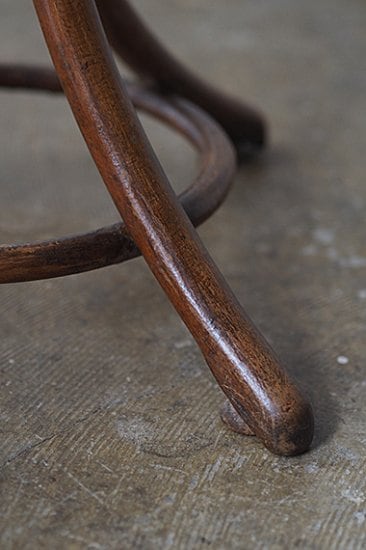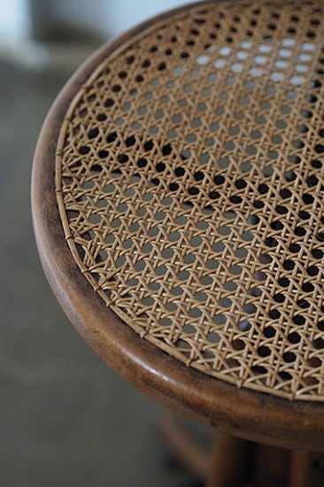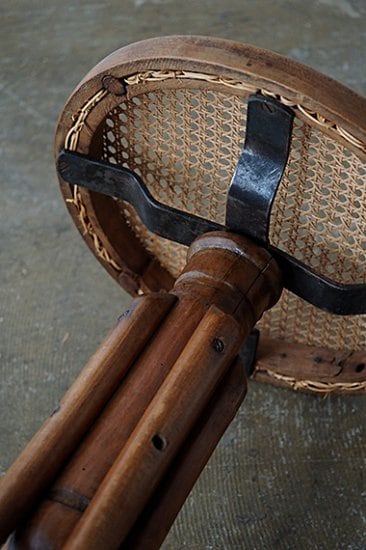 軽やかで繊細なラタン張り座面、未だ3点共座る事の出来るコンディションですが、一部籐編み目に小さな穴と切れている箇所も。