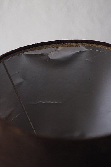 シェードの紙部分、一部押されて折れ線や凹みがある箇所が御座います。シェードのみの高さはh275mmで、土台の直径はw120mmです。