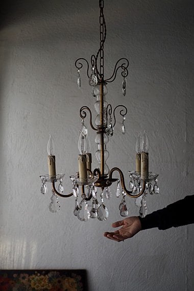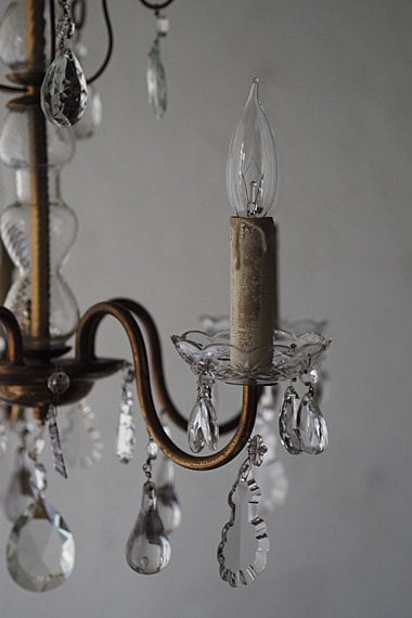 重さは3.6kg御座います。ガラスドロップに一部チップがあるお品が含まれており、ガラス蝋管受け5枚の内、一枚ヒビが走っております。