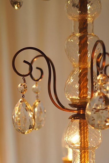 付随するドロップもこのシャンデリアに付けられているからこそ、他の照明で見かける形でも甘くフェミニンな印象に変わる、まるでキャンディボンボン。