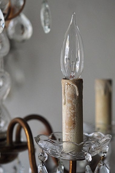 12口径シャンデリア球を使用しておりこちらの照明に電球は付属致しておりません。電球は専門店にてお買い求め下さい。