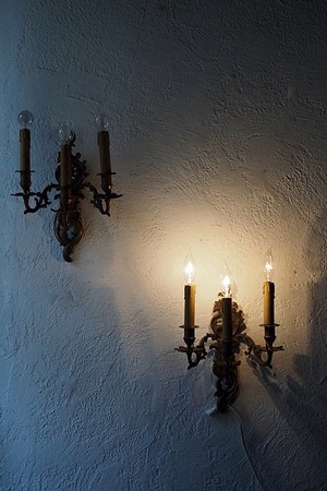 アンティークの蝋管は出来るなら生かすべく、新たに立てて頂いたソケット口径とうまく合致して全体の調和良くオリジナルの姿形そのままに残せました。
