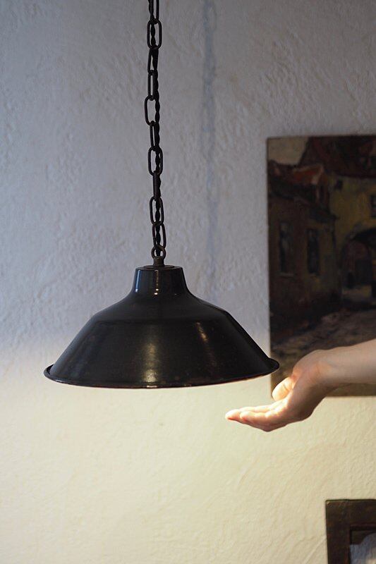 26口径普通電球を使用しており、こちらの照明に電球は付属しておりません。専門店にてお買い求め下さい。シェードに点々とした錆びが御座います。シェードのお色は真っ黒というより濃いグレーです。重さは1kgです。