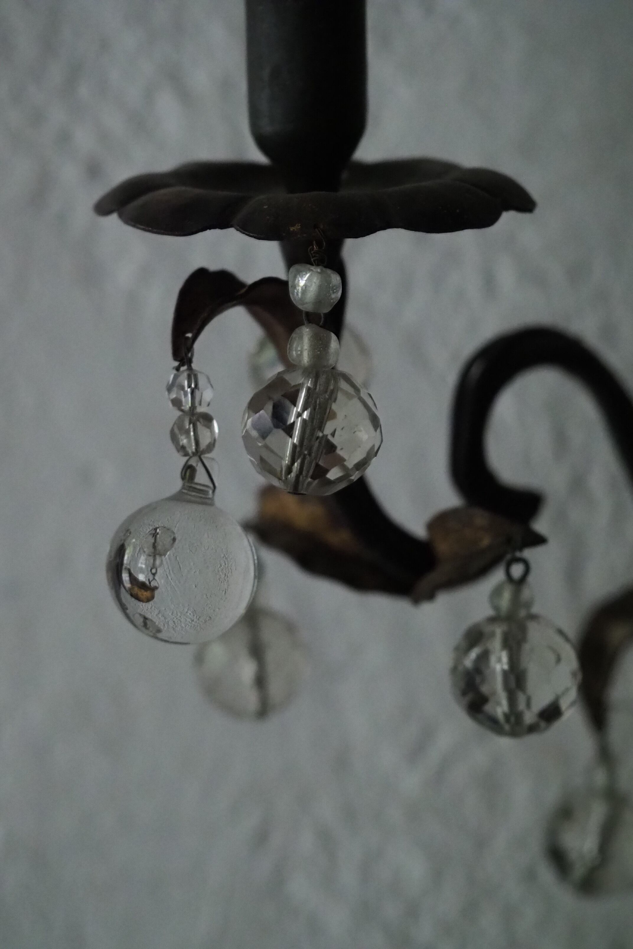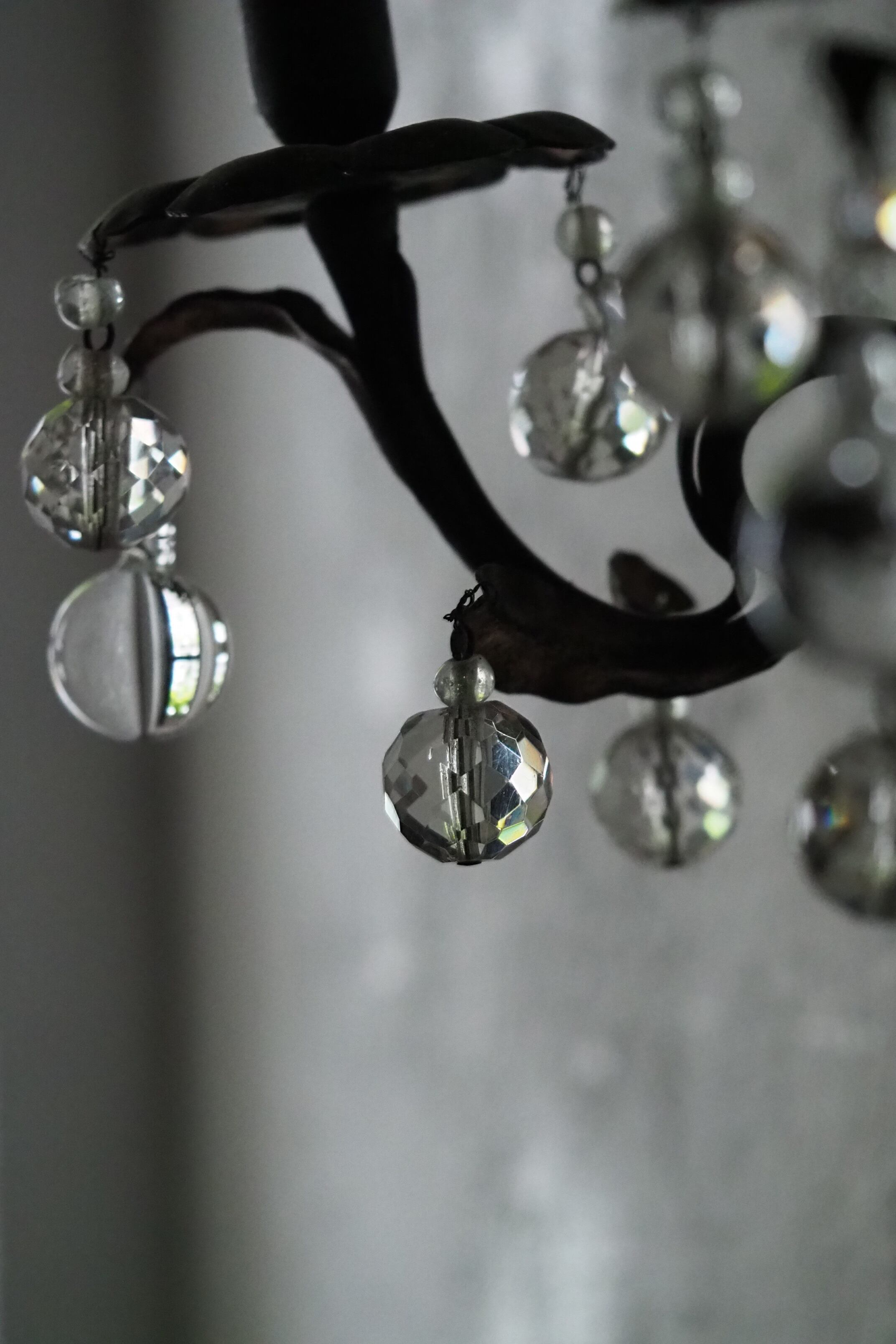 電球の光を反射して多面体のボールドロップが慎み深く煌めく、瀟洒なブラケットランプ。