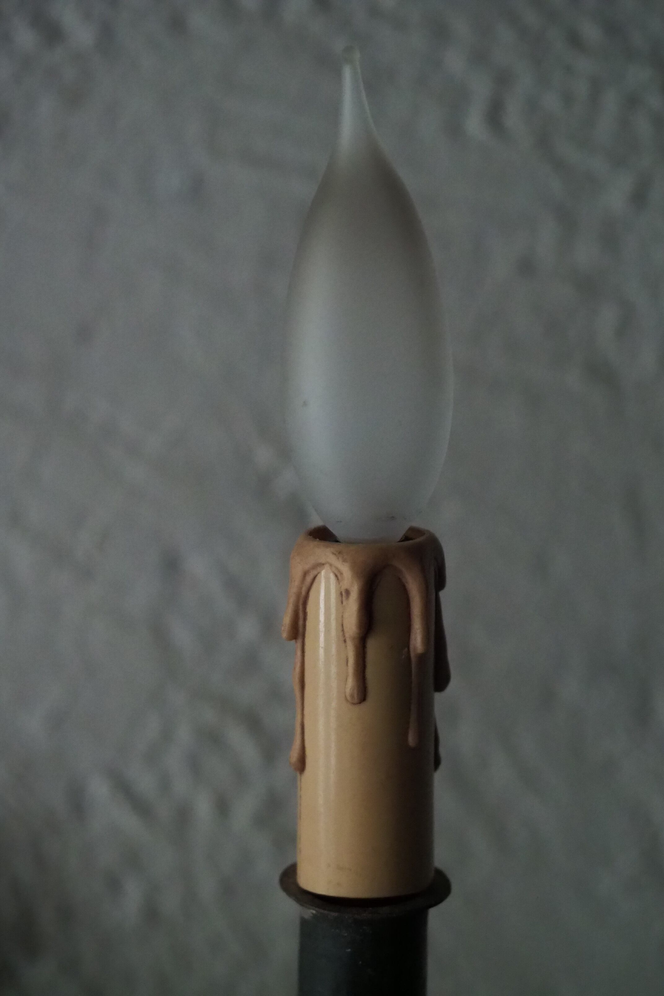 12口径シャンデリア球を使用しており、こちらの商品に電球は付属しておりません。電球は専門店にてお買い求め下さい。