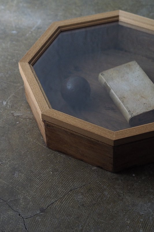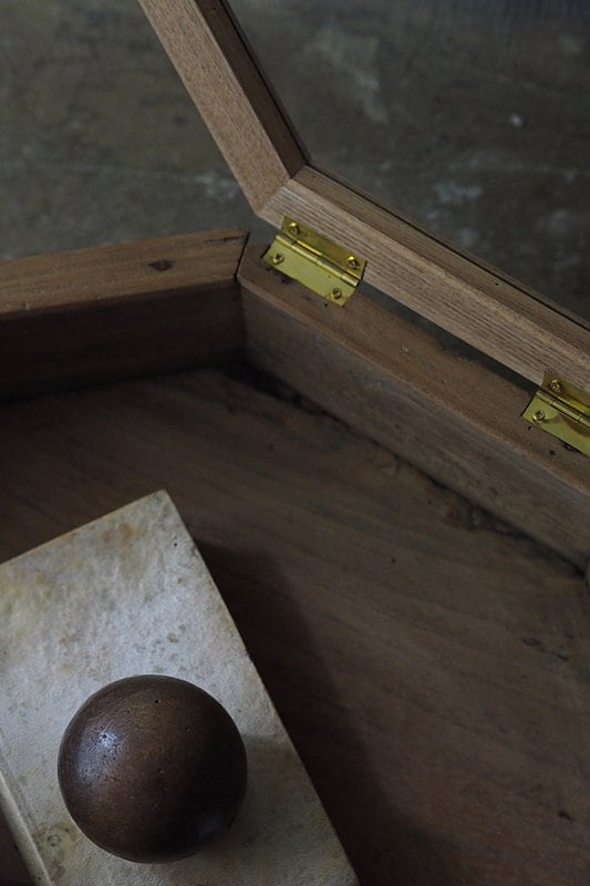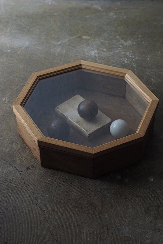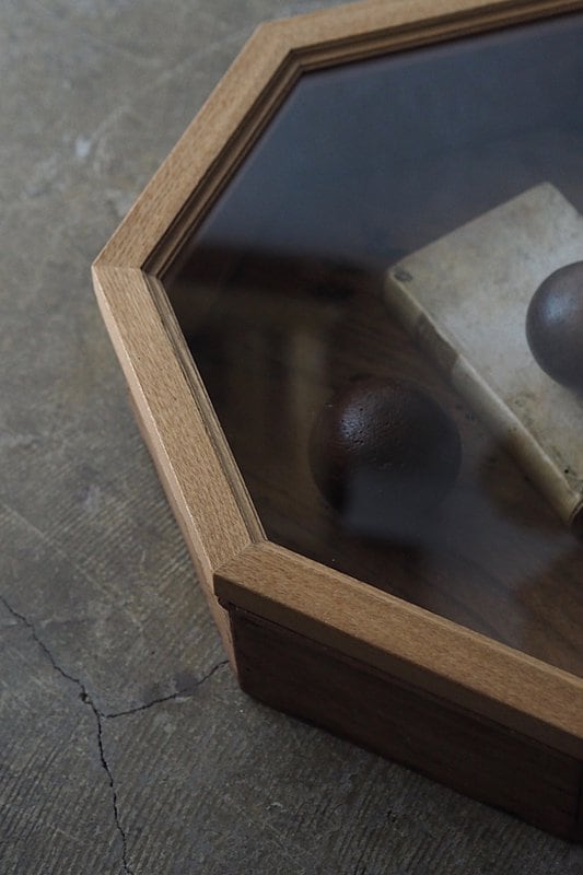 土台はダイスを転がす為の容れ物だったのですが、塗装を剥がし蓋を付けてショーケースに。