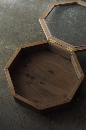 縁には中の対象物へといざなう様に幾重のモールディングが施され、カップ&ソーサー等高さがあるお品も飾れる内寸。
