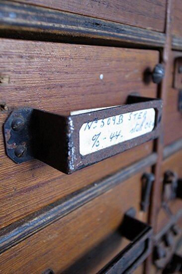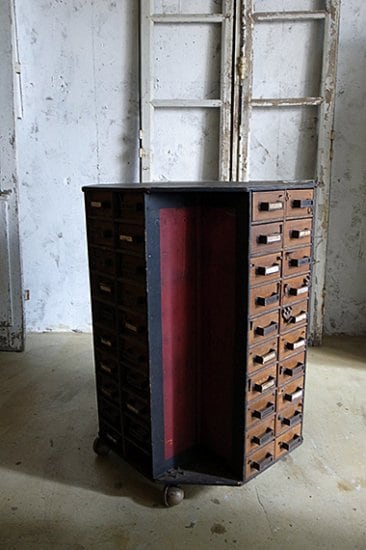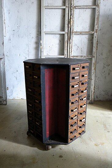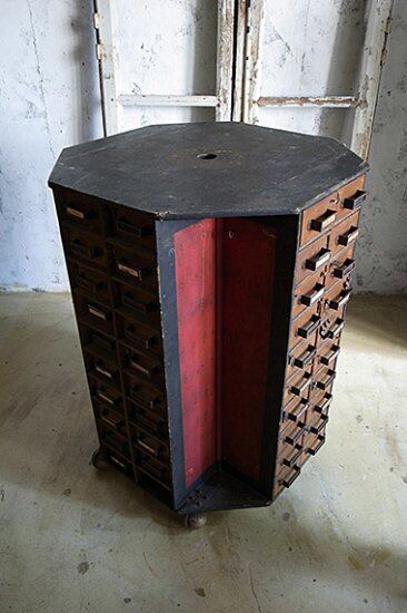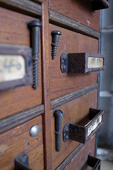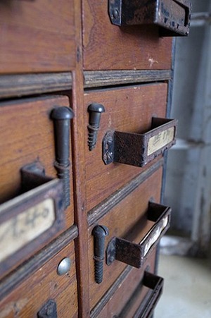 それぞれの抽き出しには入っていたネジが印として付いています。