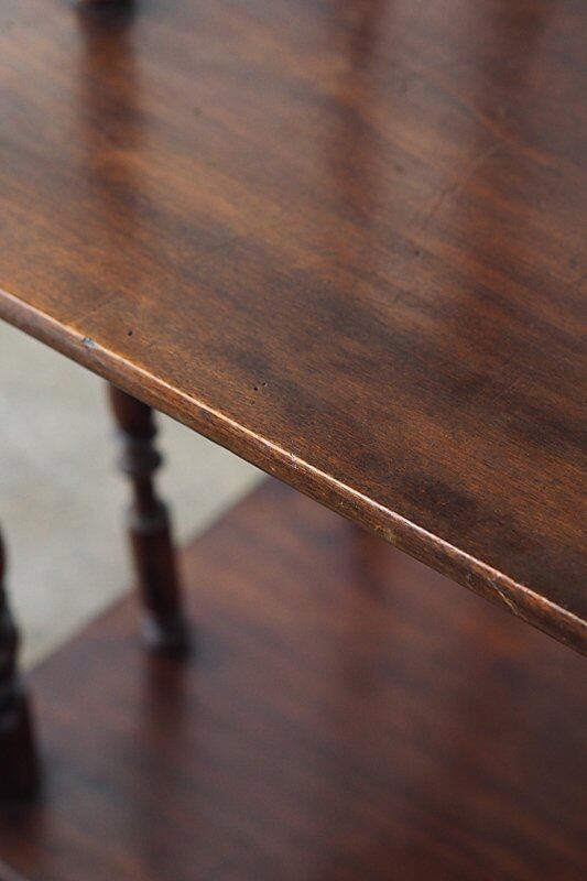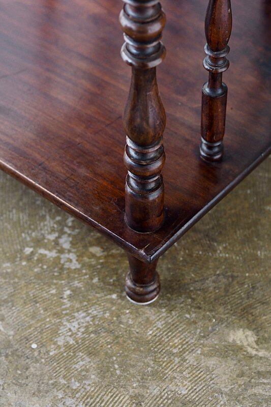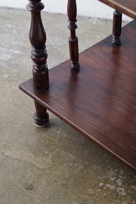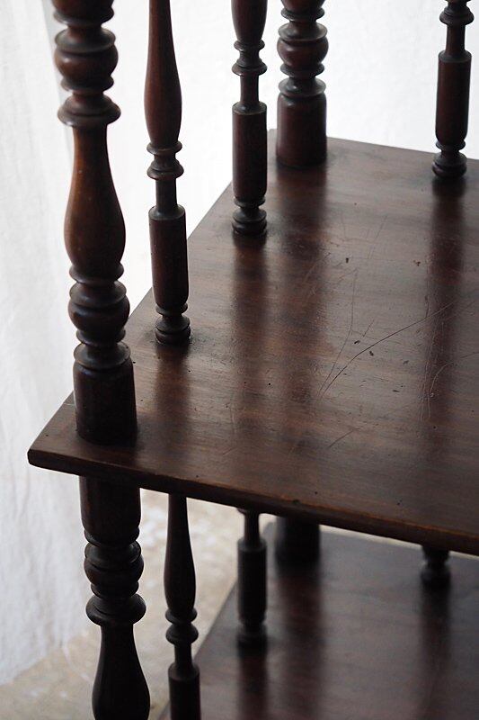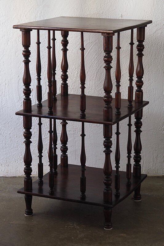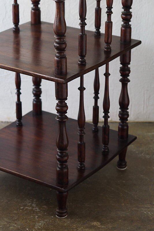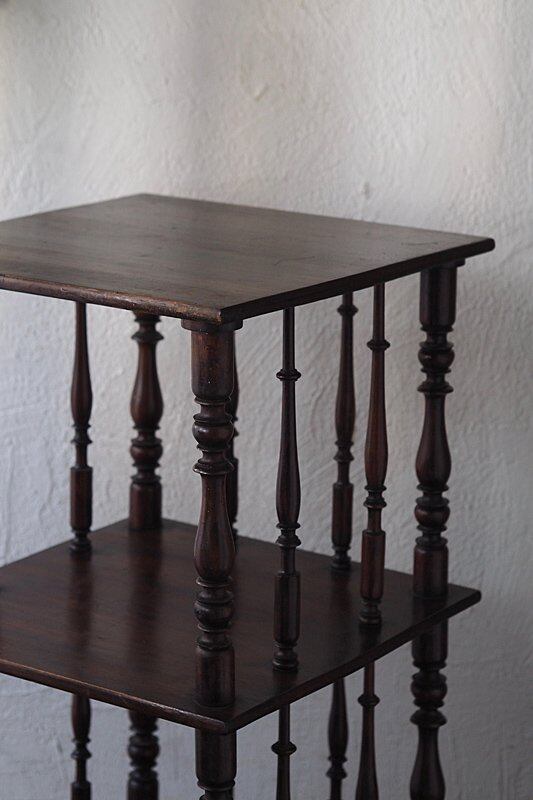 気品漂う赤茶濃い木肌を保つマホガニーで出来たほぼ正方形のシェルフ、並ぶコラムの美しさが特に際立つ。