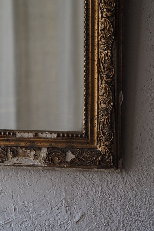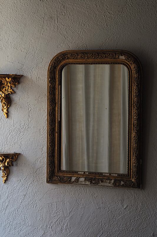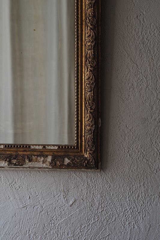褪色した黄金色の地に石膏の剥がれた箇所が景色として残りガラスの腐食は現状僅かに御座います。