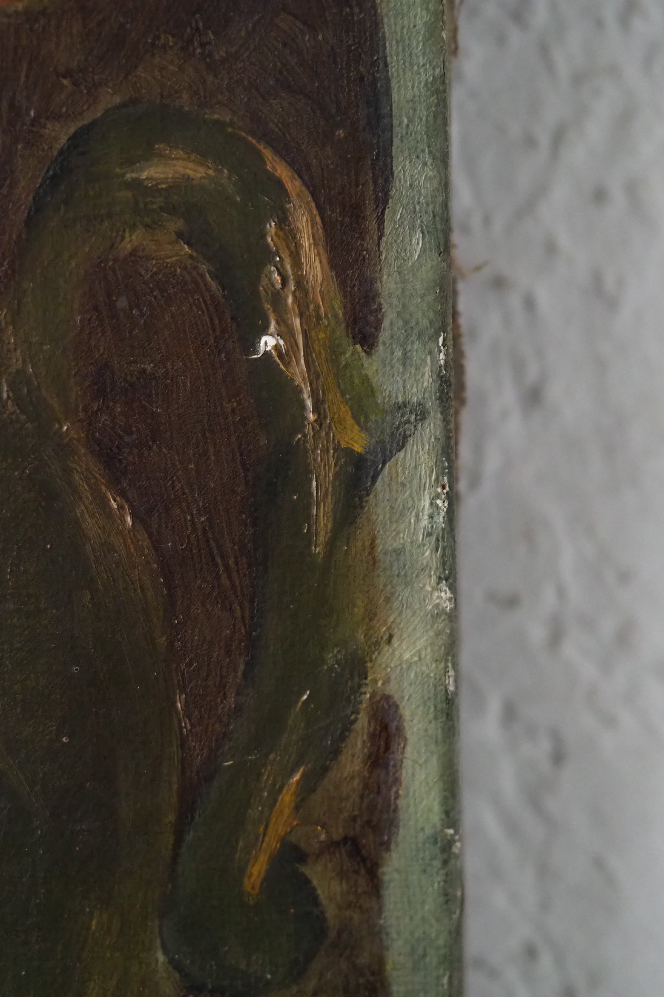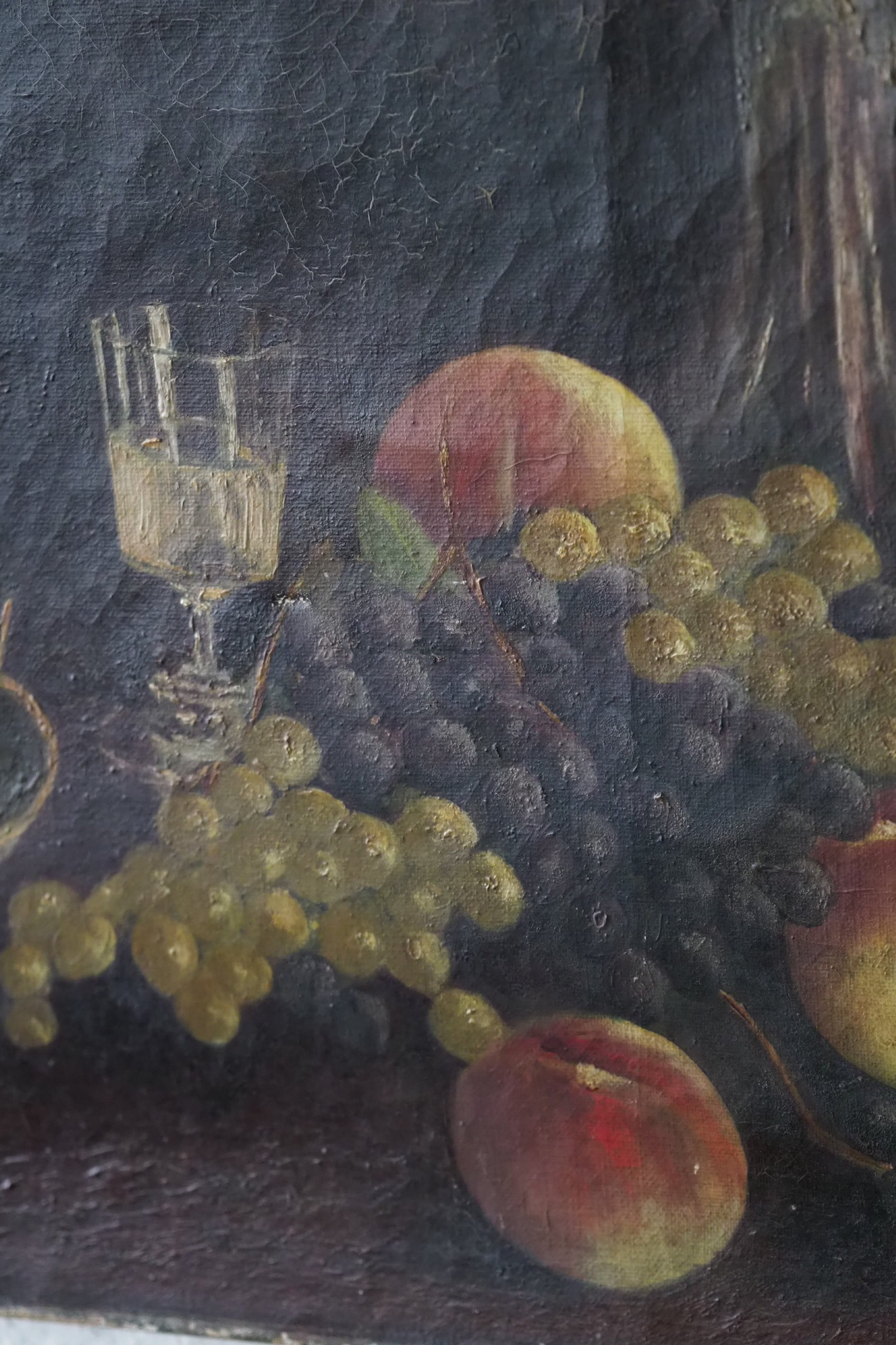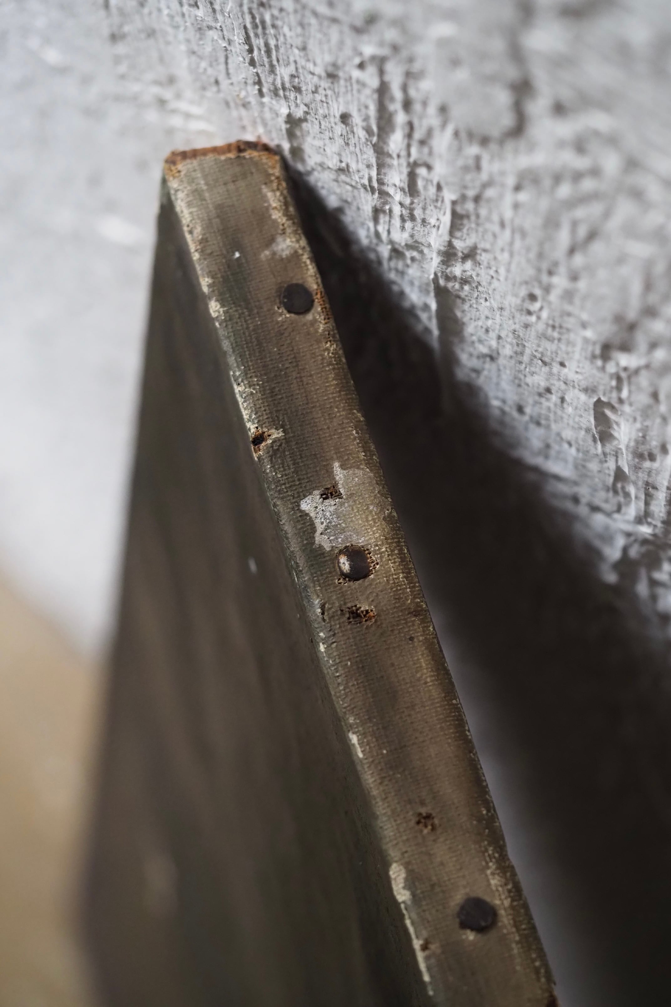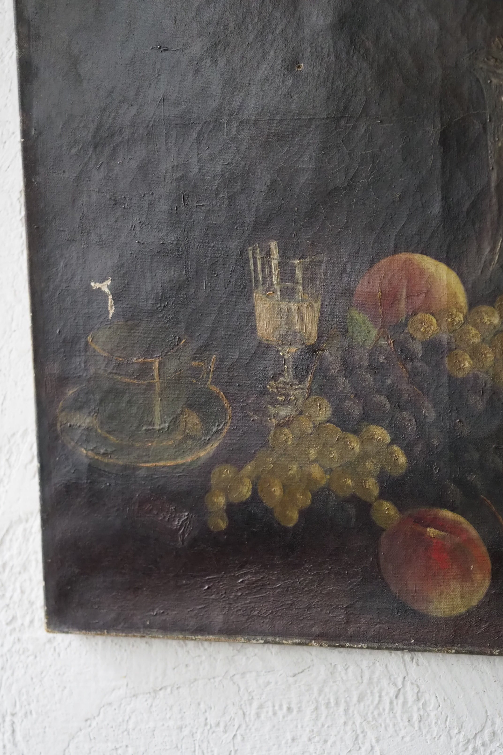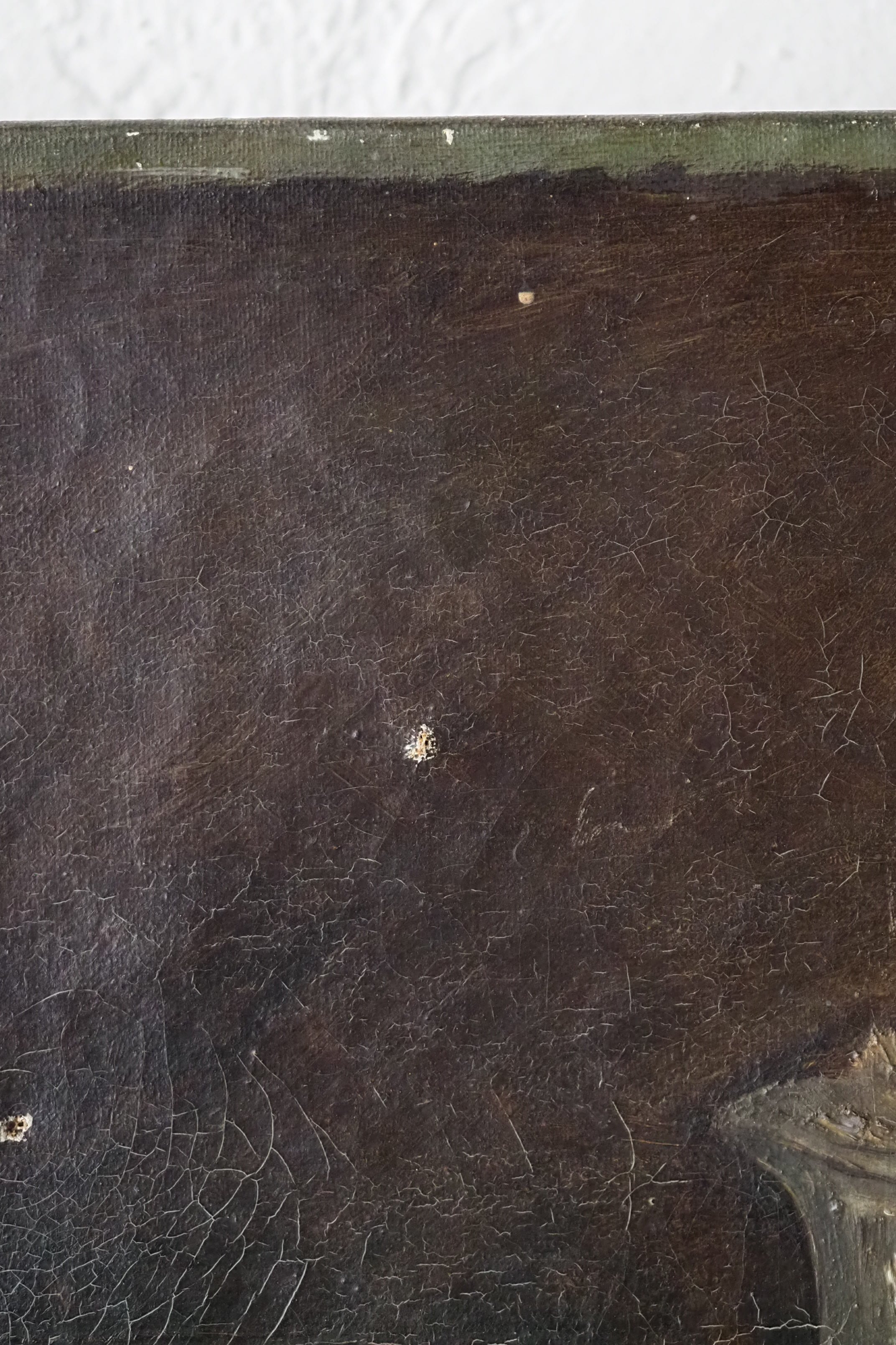 キャンバスに開いた穴は2箇所、ティーカップの上辺りに擦れ傷が御座います。