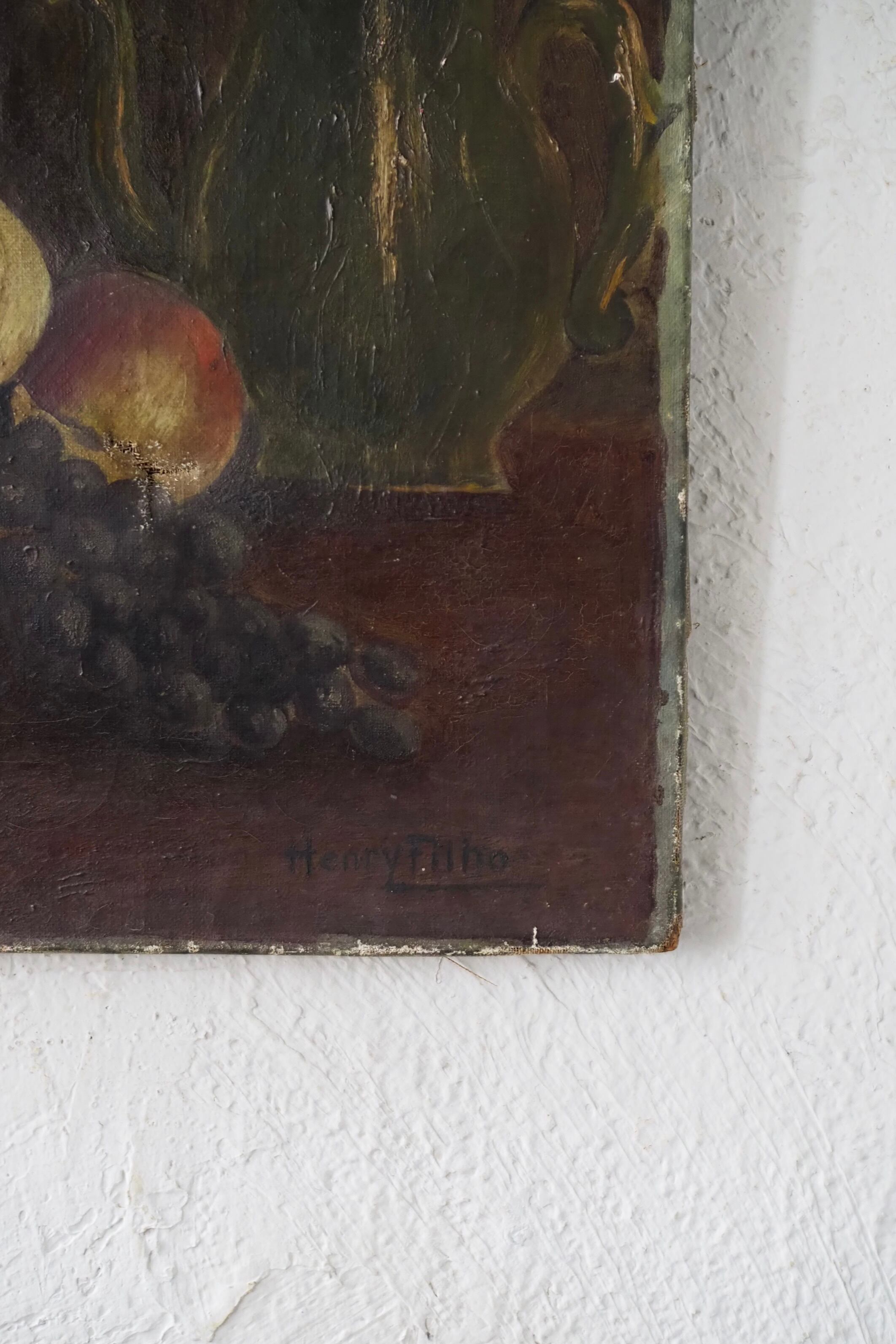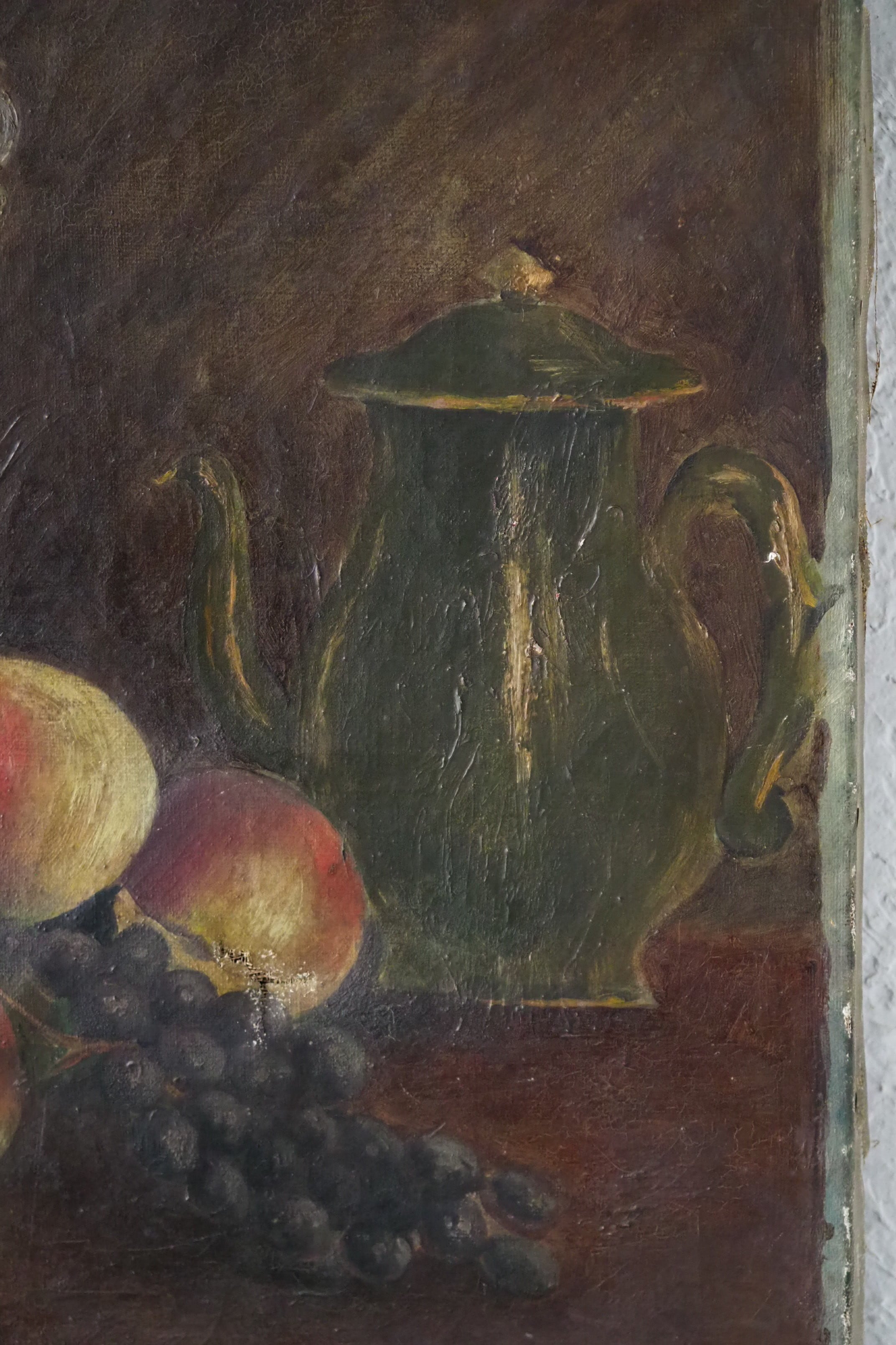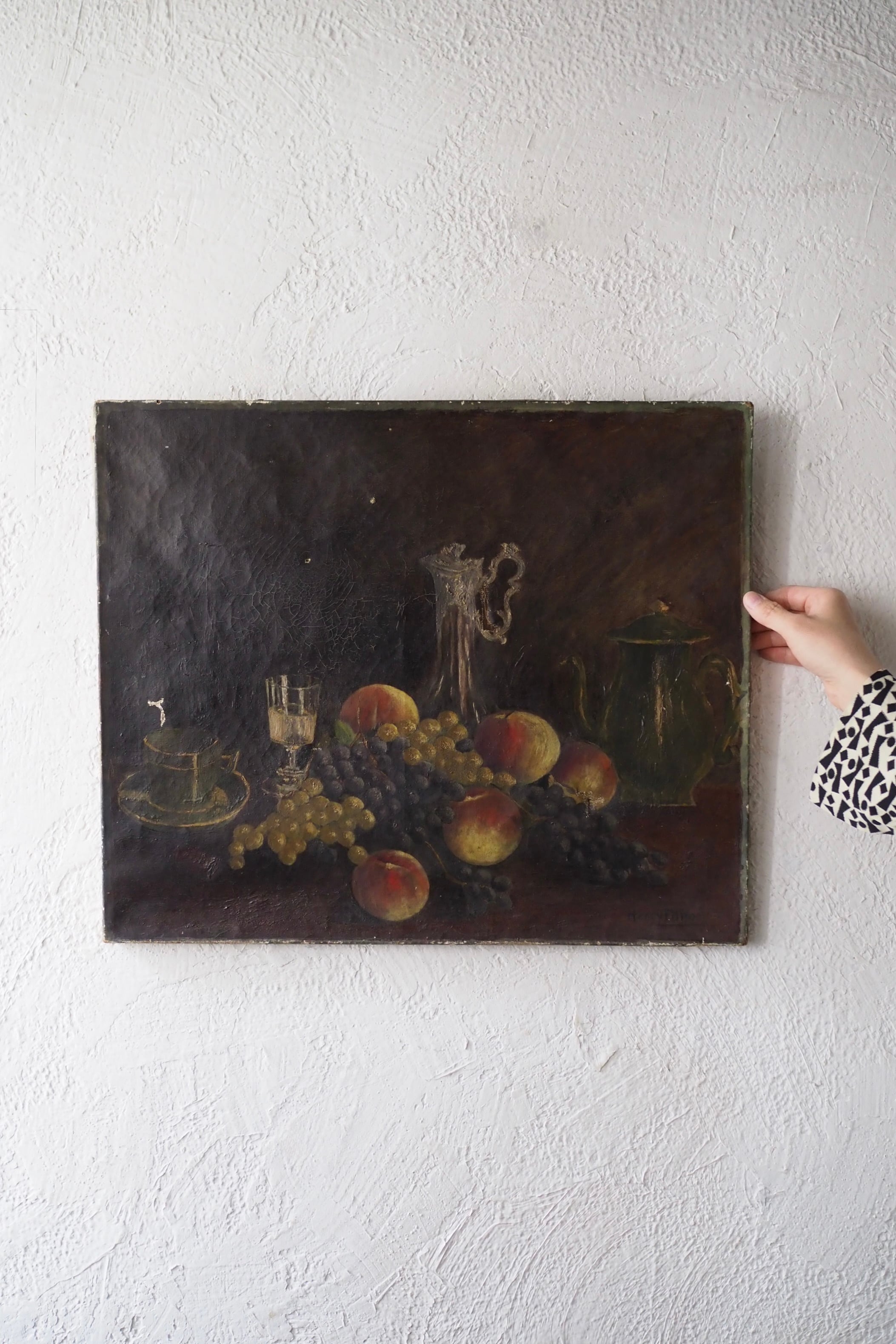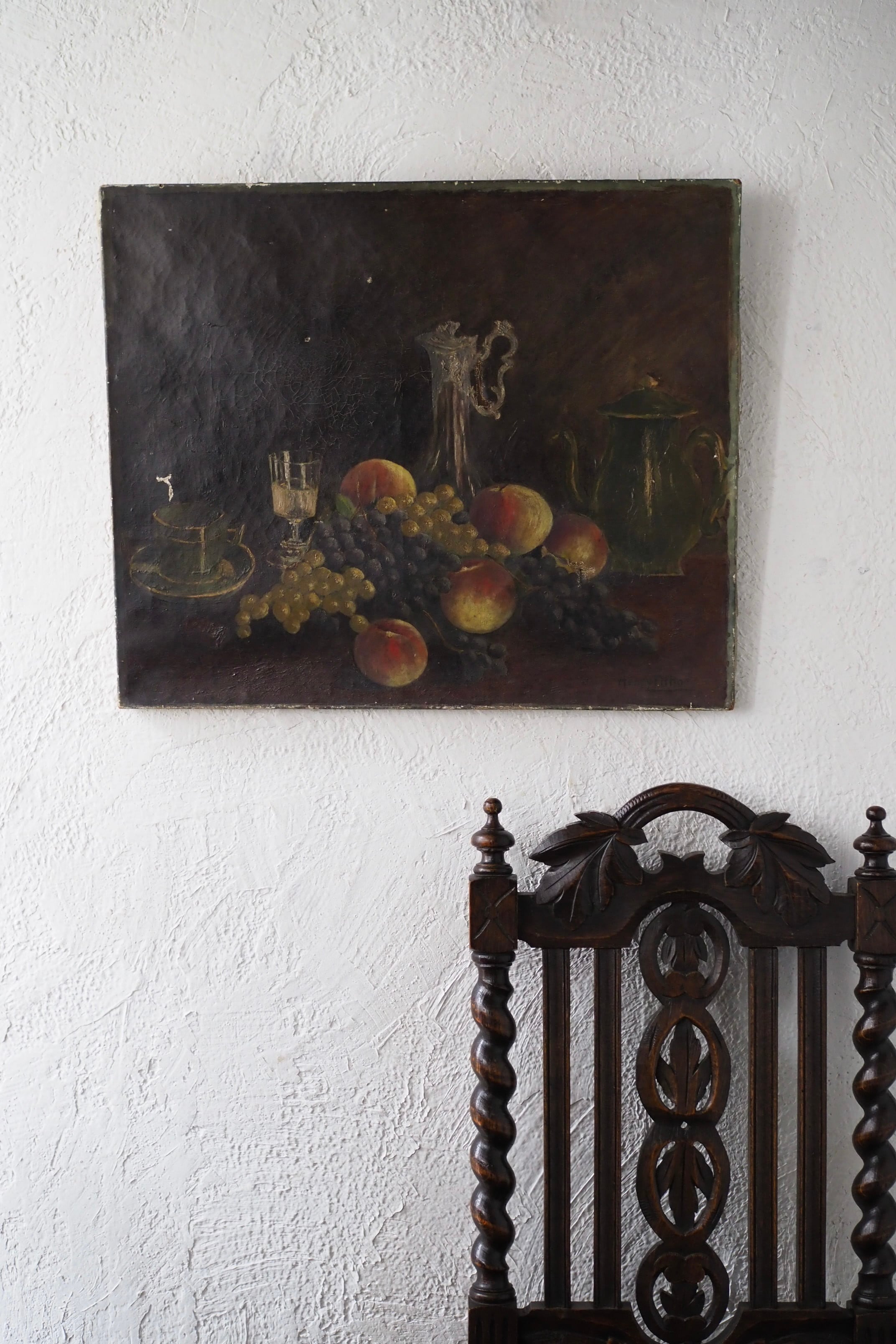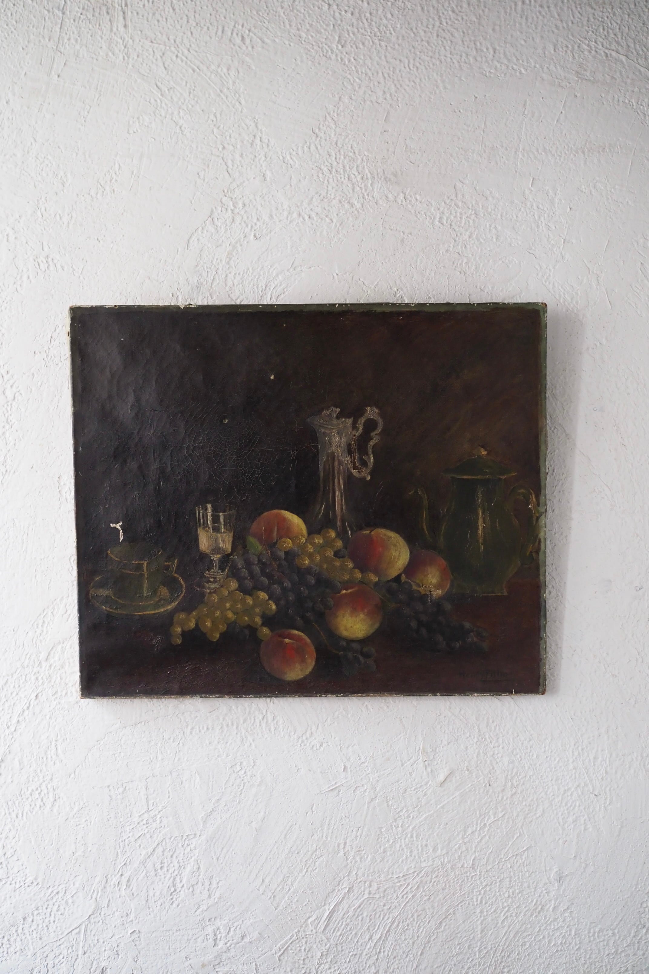 落ち着いた背景の中本来より低い色調で映っているのか、ピションユゼス風ティーセットのグリーンに因って、より中央の果実の色対比を際立たせております。