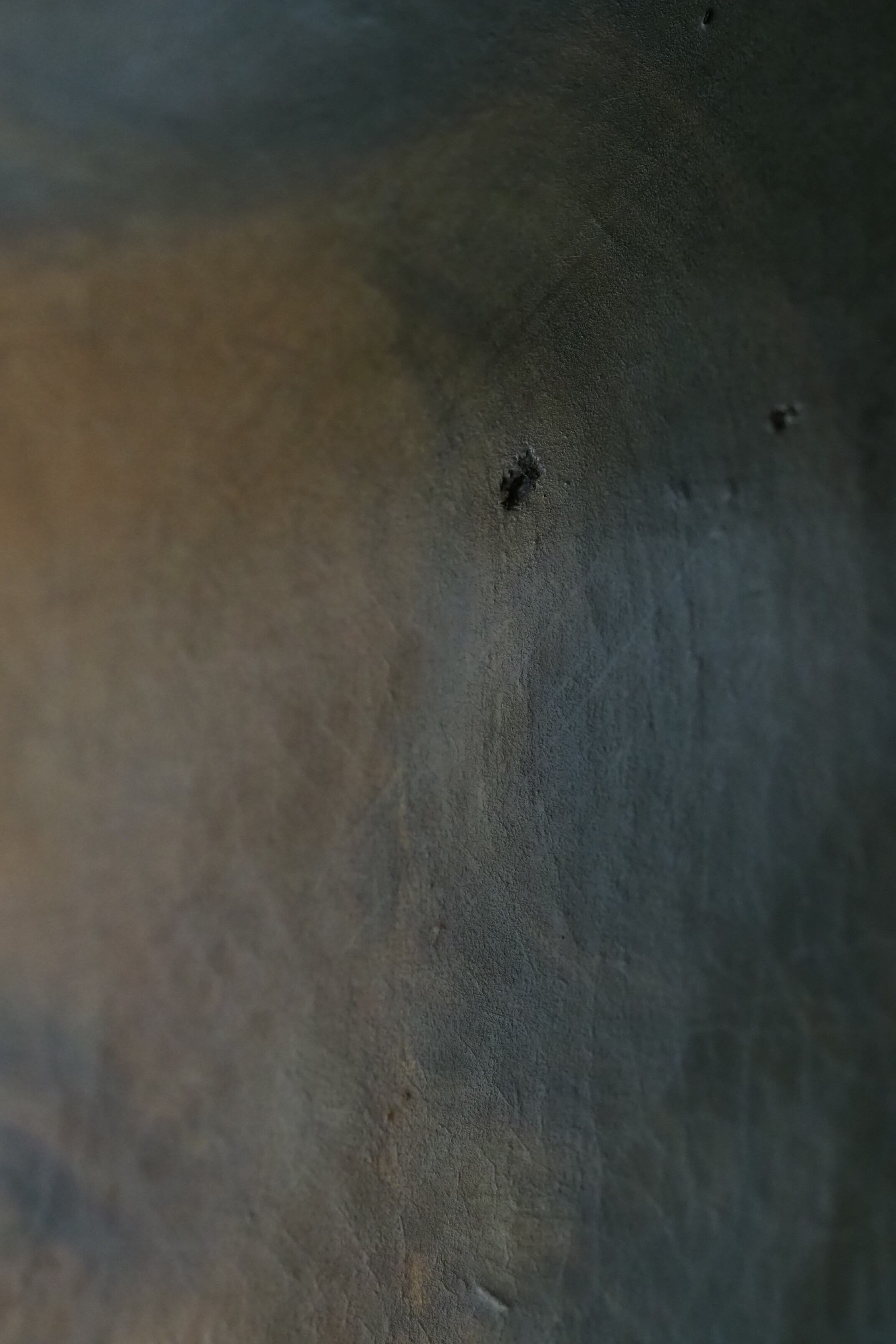 裏からいくつか補修した跡と、縁にぐっと後ろに押されたような凹みが御座います。