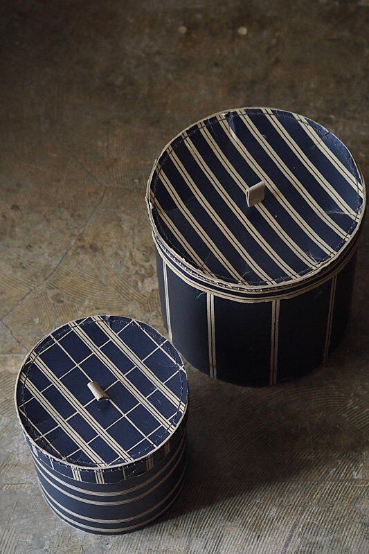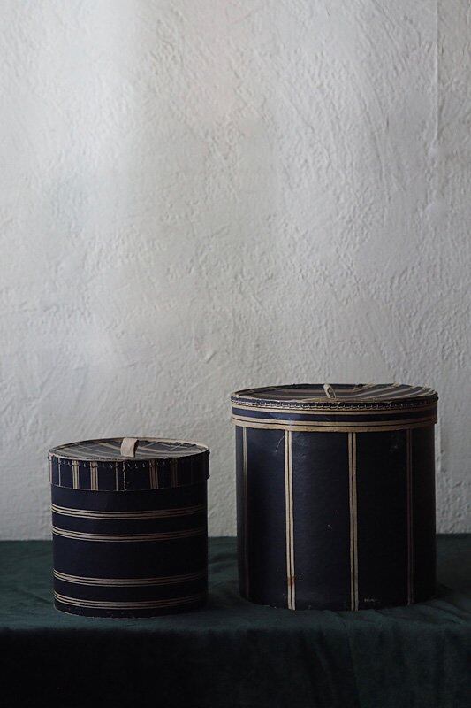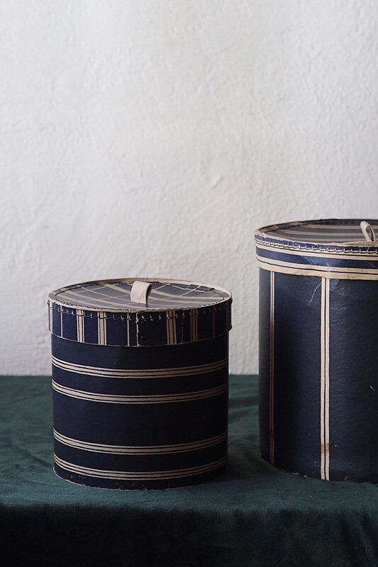 成人男性とお子さん用ボウラーハットを仕舞っていた帽子箱、二つセットの価格となります。