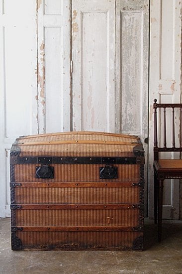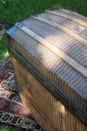 おそらく19世紀末にルイ・ヴィトン社から販売されたストライプ柄を模したトランクのひとつ。汽船・蒸気機関車、長旅用の荷物を運んだスチーマートランク。