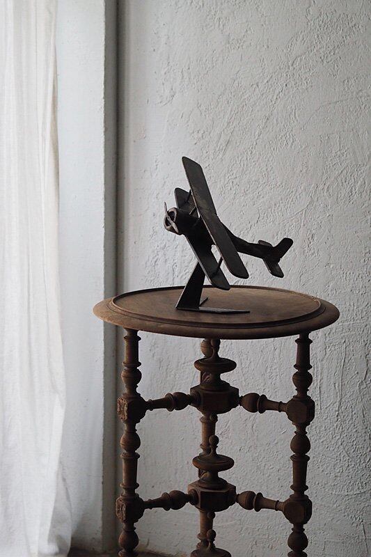 全体の塗装に錆が出ておりWAXで錆び止めを施しております、しっかりとした重みがあるオブジェ。