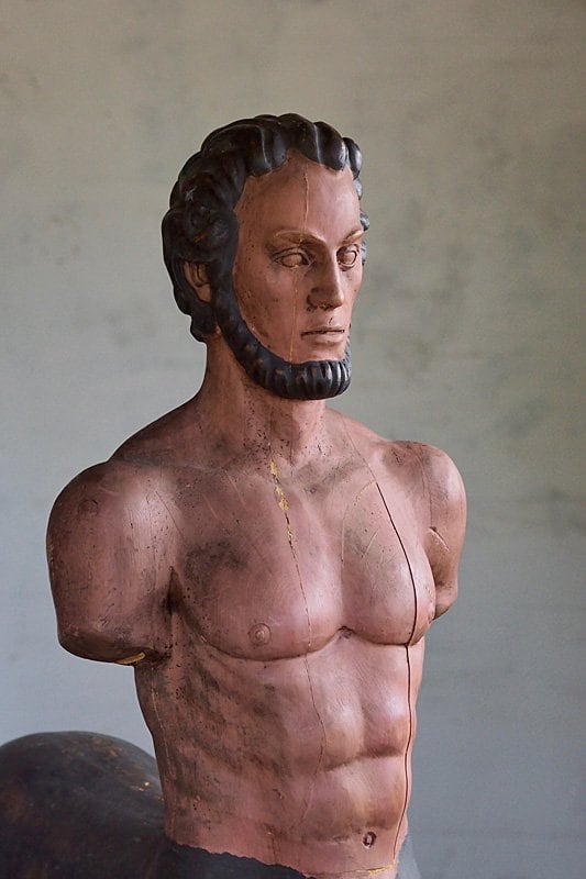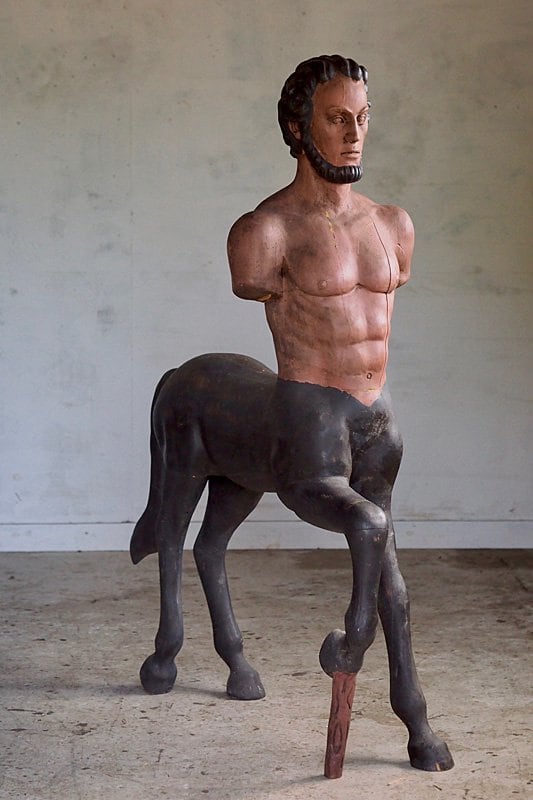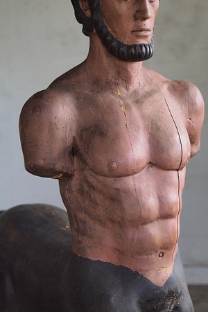 唯一非凡、全て木で出来たギリシャ神話のケンタウロス。出国籍や詳細は不明な大きなオブジェ。