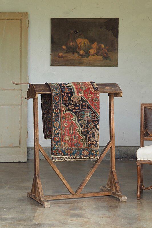 ショップで写真の様にラグや織物を掛けてディスプレイする什器として、もちろん乗馬される方は大いにお使い下さい。