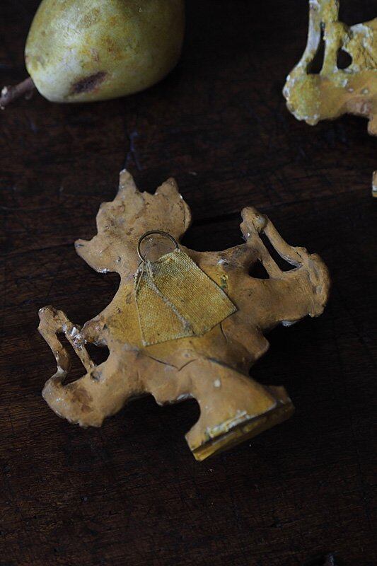 デザインは同じくしてディテール確かめると左右微妙に違う彫り模様、石膏に手彫りされて作られたと思われる。