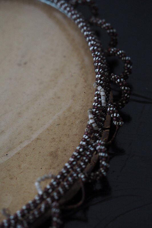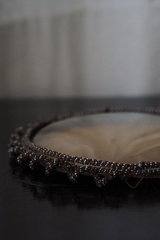 背面の厚紙とビーズ装飾一部で留まっている仕様になっています、卓上に置いて飾って下さい。