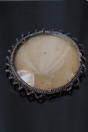 こちらの商品はガラスカバーがビーズ枠に挟まり収まっている状態です、現状では壁掛け出来ません。