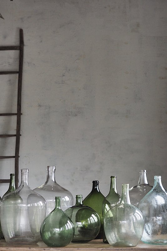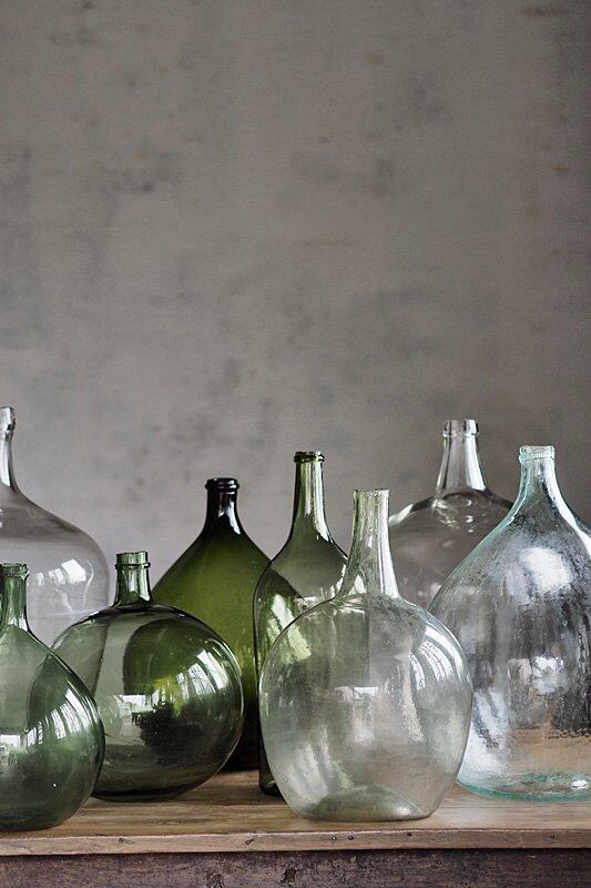 コルク栓ではなくガラス封で口元を閉じカットし開封した時代のボトル有り、計算なく整っていないモノに宿る美。