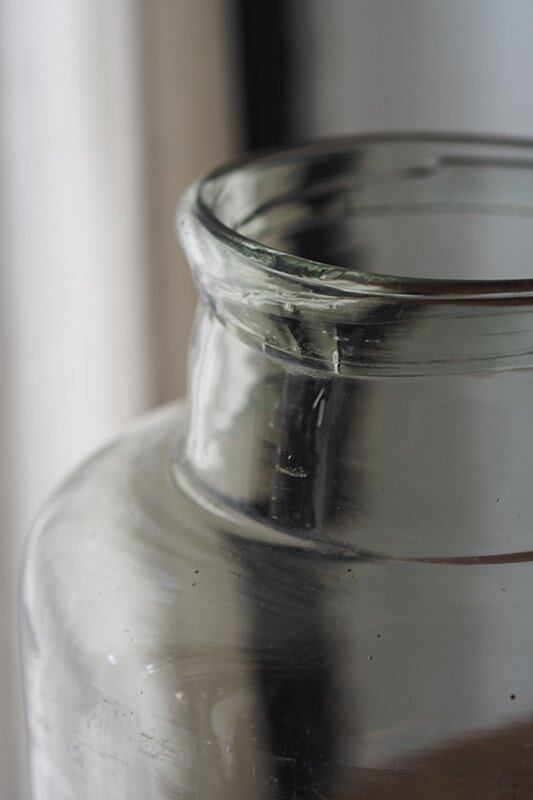 チェコスロバキアやハンガリーの東欧で作られた素朴なガラス瓶たちは枝を活けるのにも、