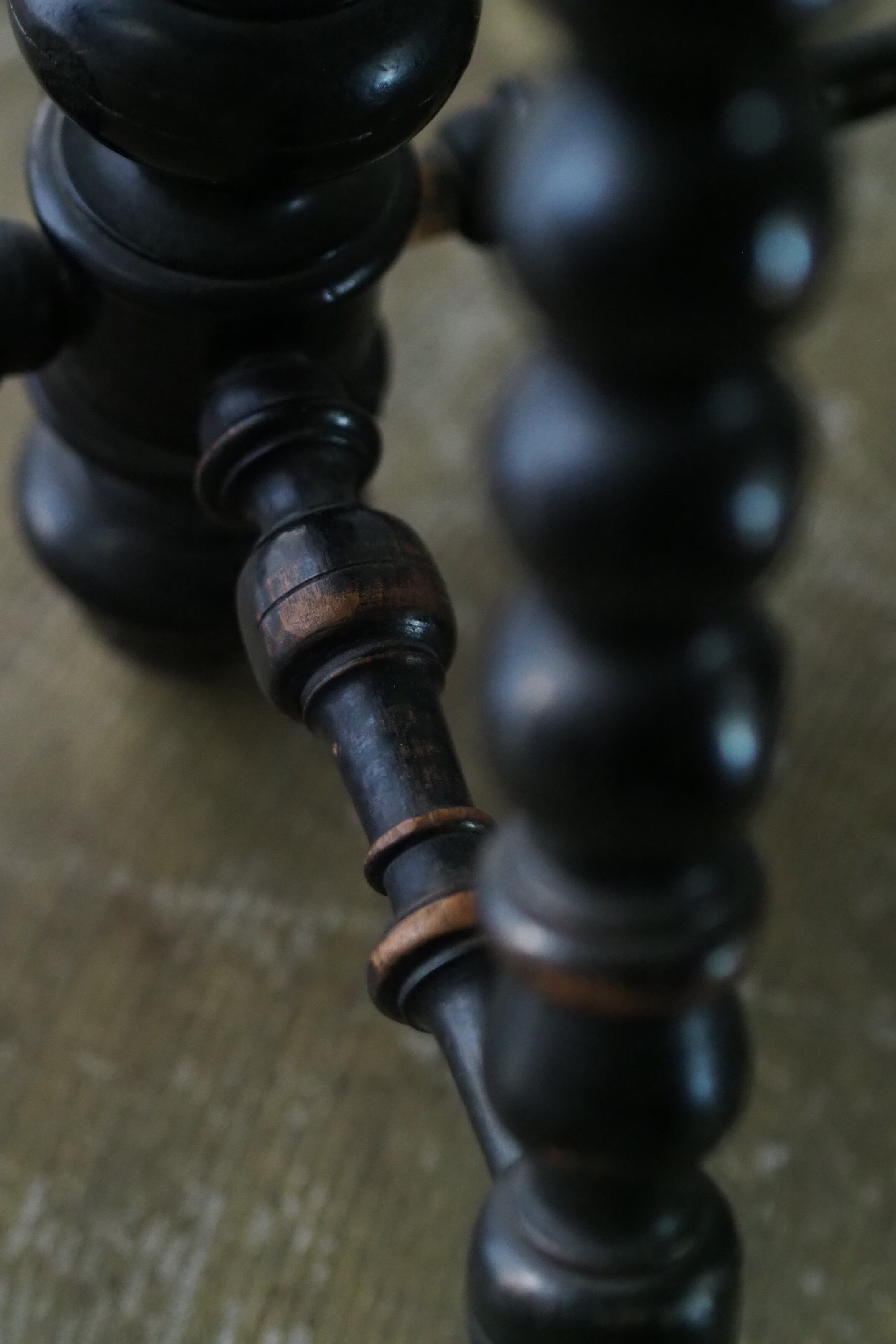 木部に虫喰い跡少なく良いコンディション。軸は鉄製で重さが御座います。各貫を差し込んである構造ですので床をお掃除する際など1本だけ脚を持って引きずる事は避けて下さい。