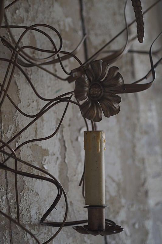 現在オリジナルの蝋管3点付属、コードは照明本体より少し伸びており先端断ち切りの状態です。