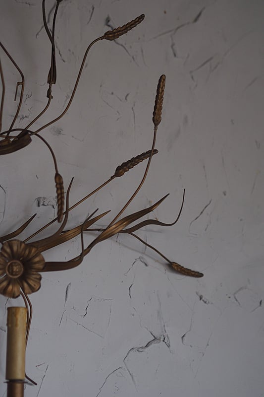 自由にうねる麦穂が壁に美しい陰影を落とす、とても大きなサイズの壁掛けランプ、オブジェとしても。
