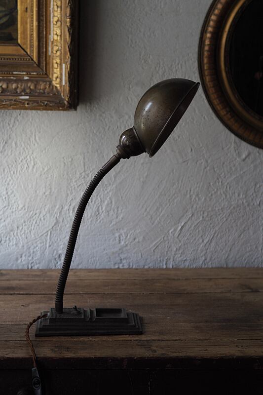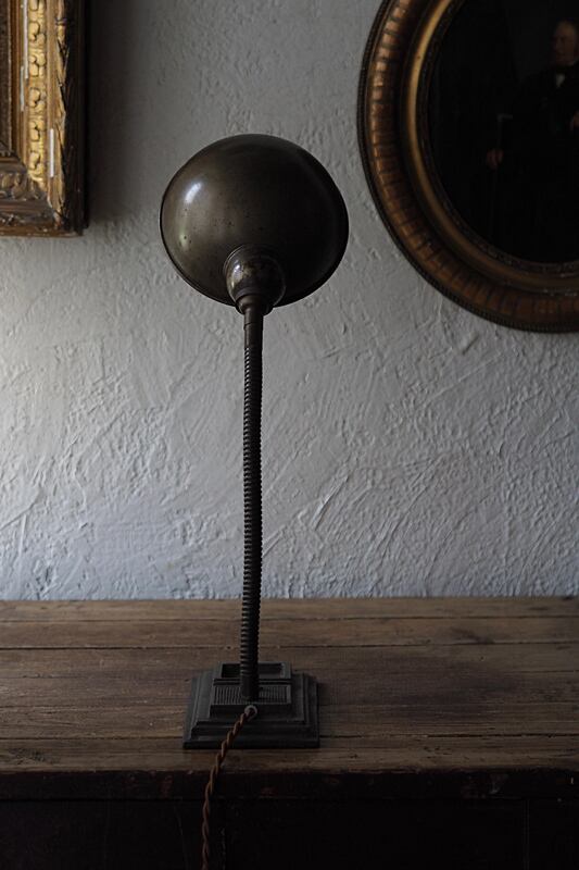 鋳物の土台、質実で静かな雰囲気のデスクランプ。英国らしい。