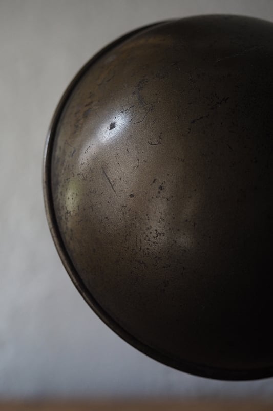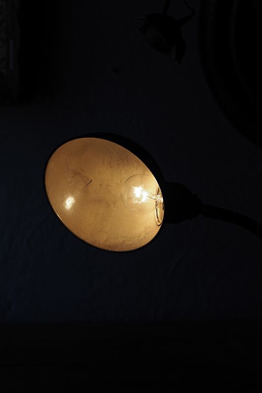 蛇腹のアームはお好きな高さに調整出来、デスク上で手元を照らすのに、絵画に朧げなスポットを当てる、、