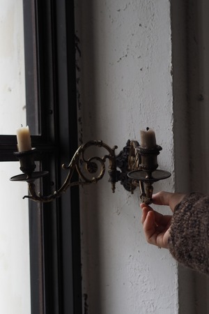 電気が通っていない19世紀に実際灯されたはずで蝋燭受けに炎の焦げ跡、緑青も。
