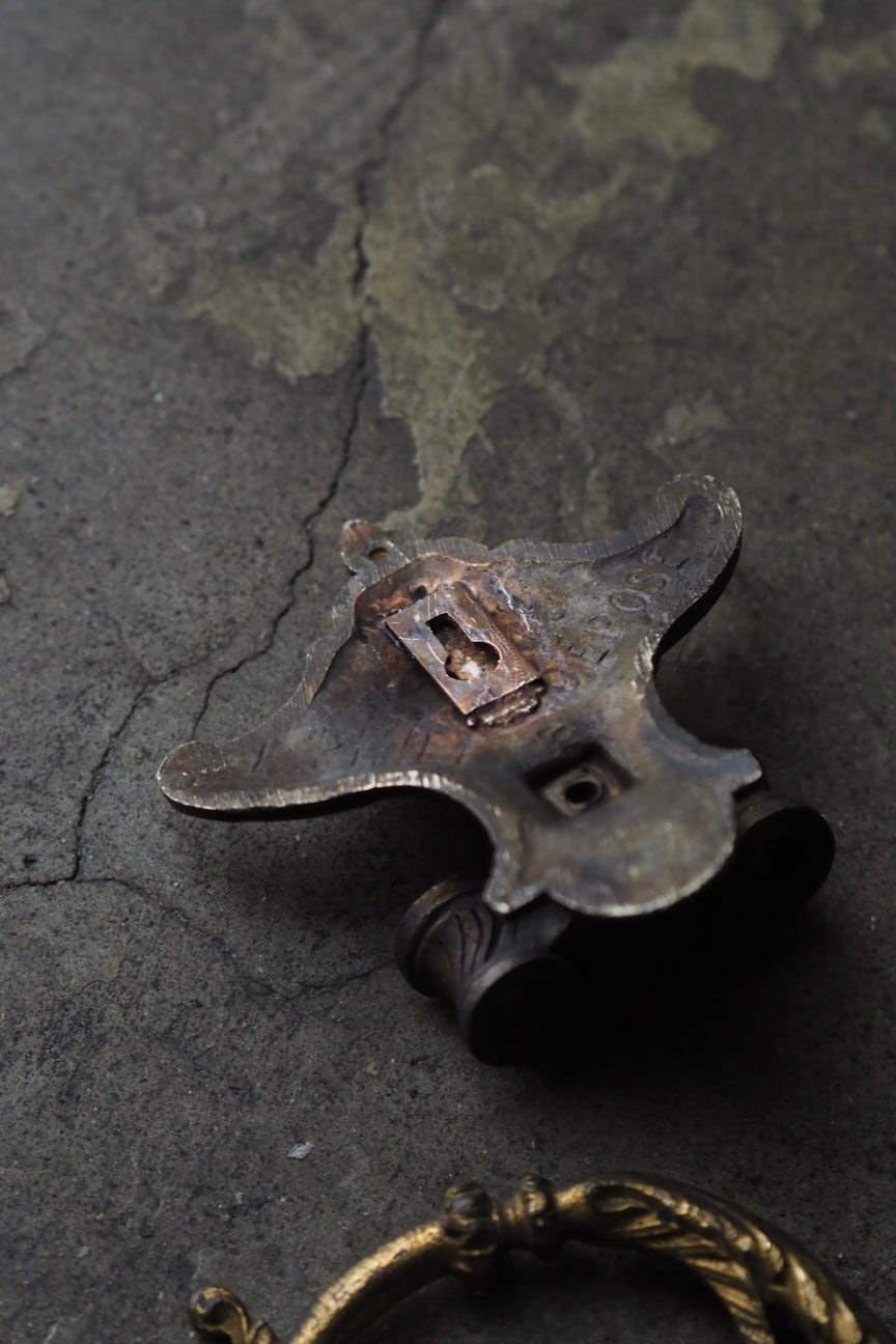 真鍮金具の背面に金属修復士の方に同じ材で引っ掛けを作成頂きました。