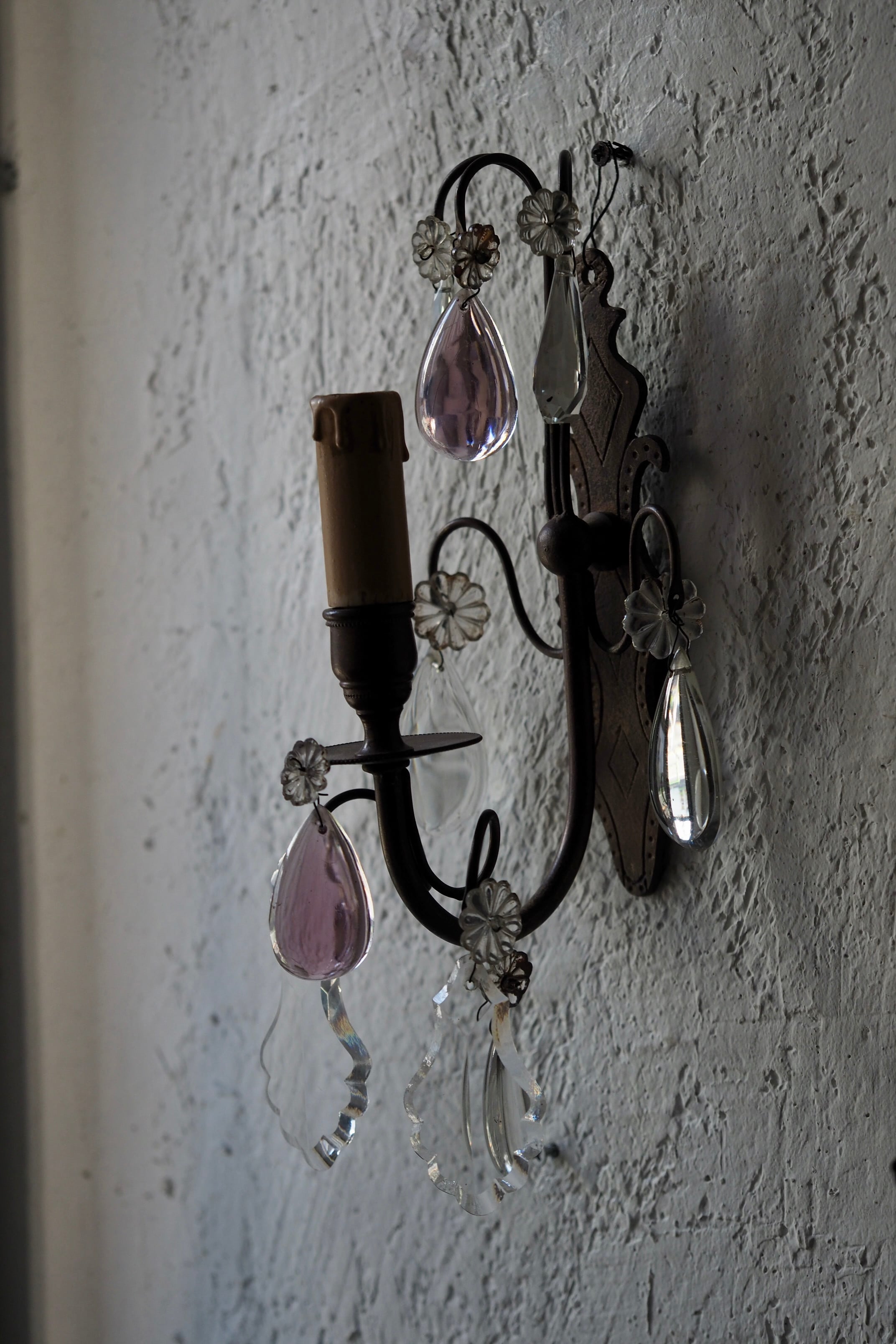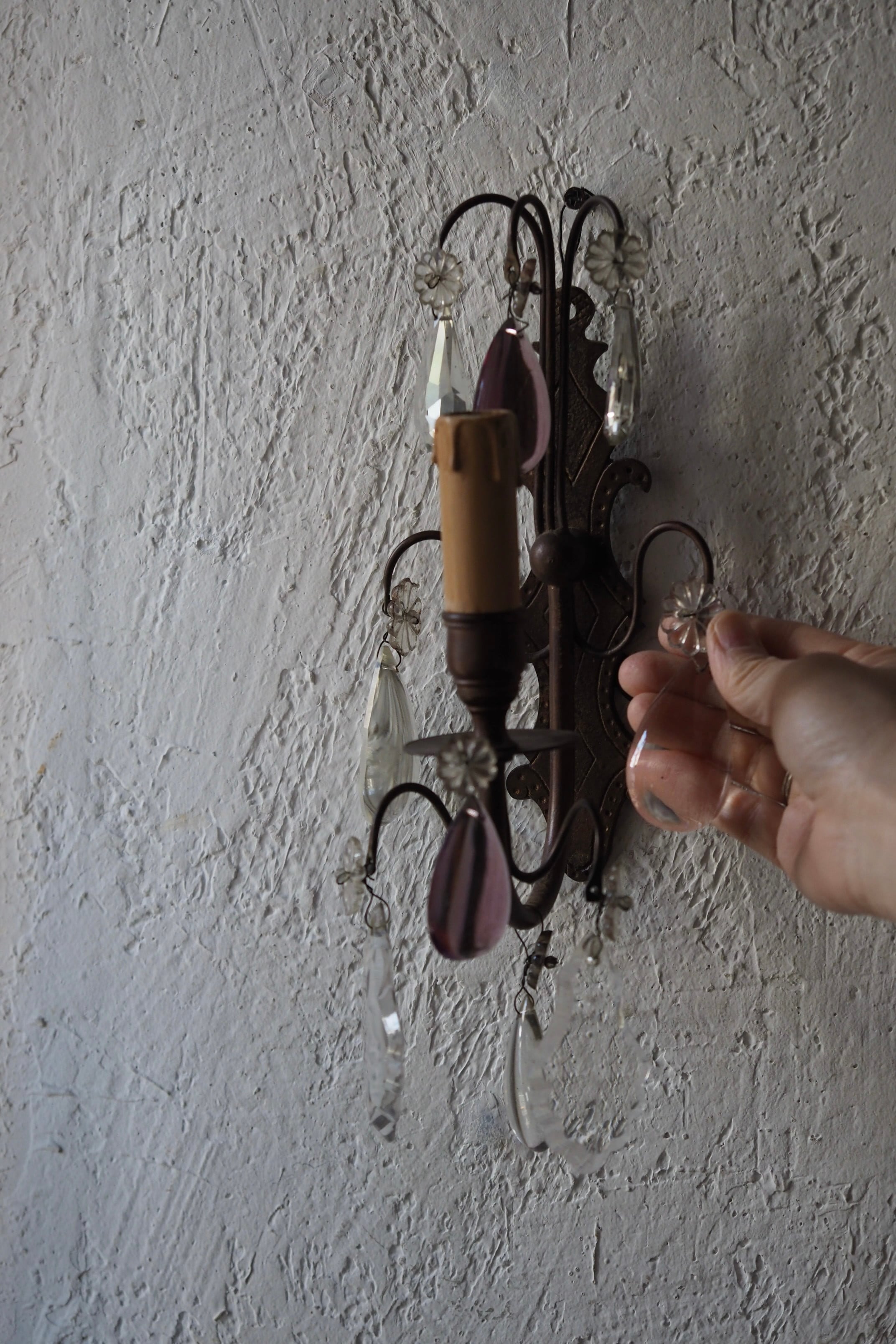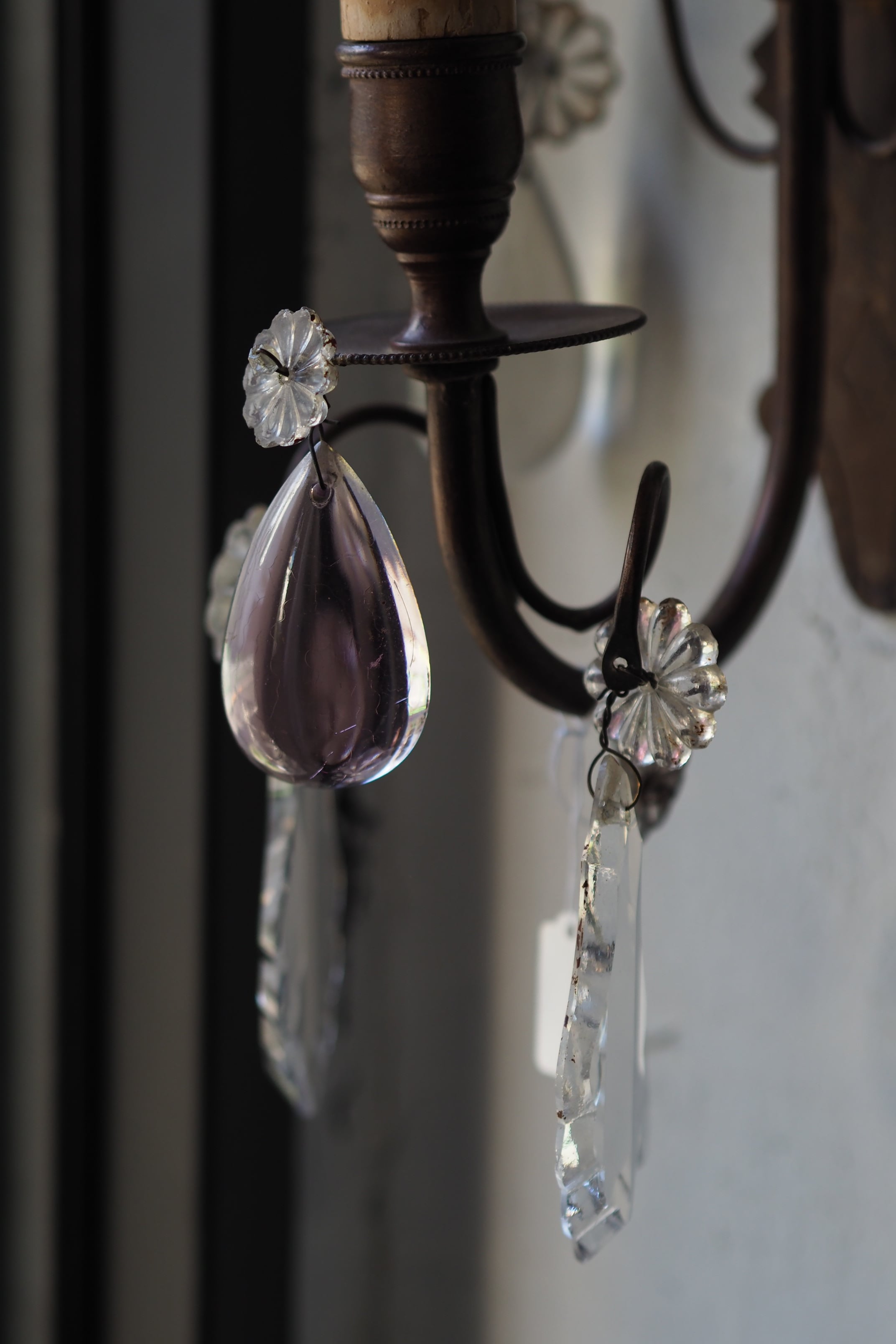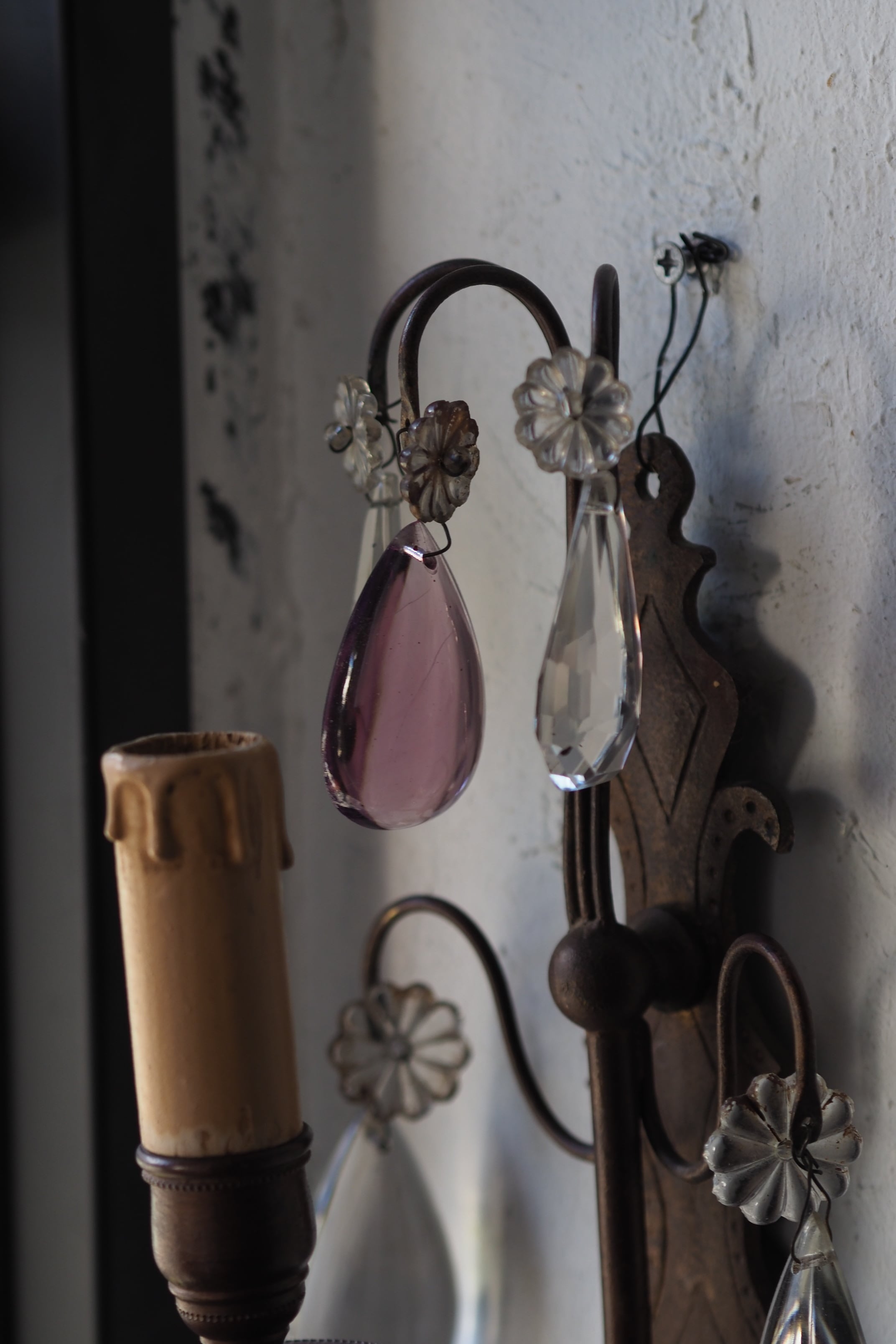 アームは真鍮にコッパー色の塗装でシックに、アクセントに入るパープルドロップは涙型でセンターに二つ。配色として上手く効かせられそうであり且つ上品。