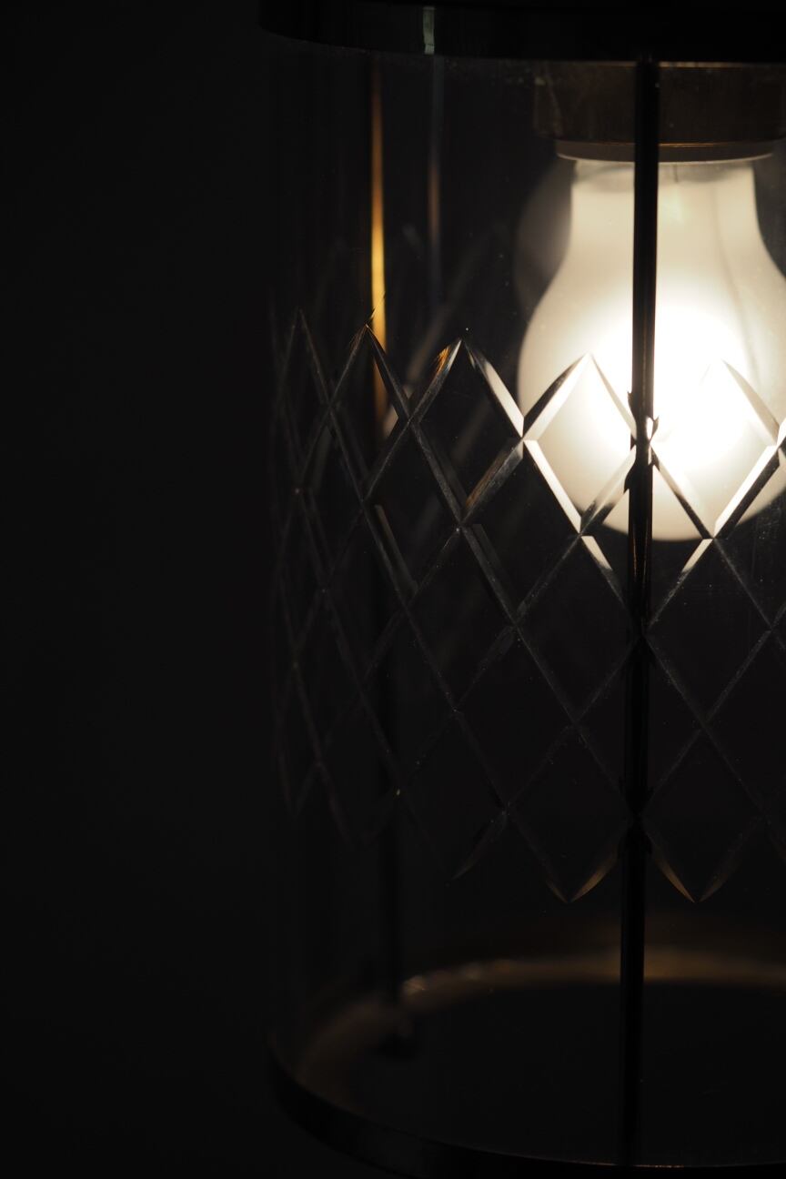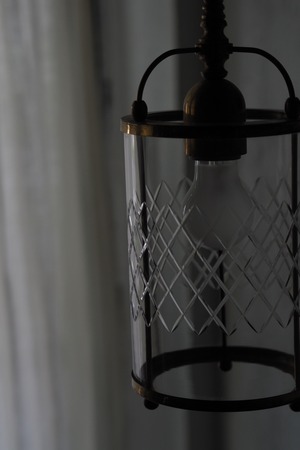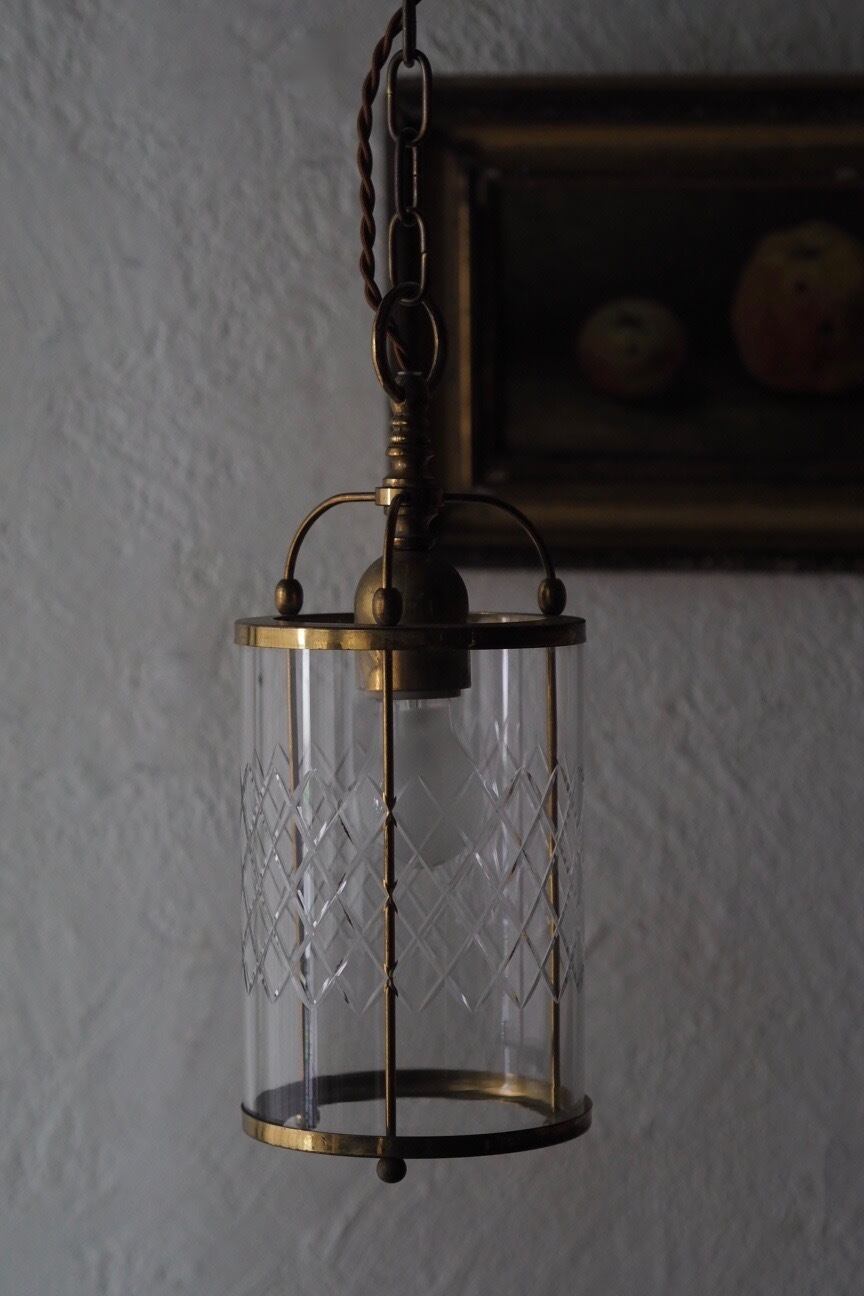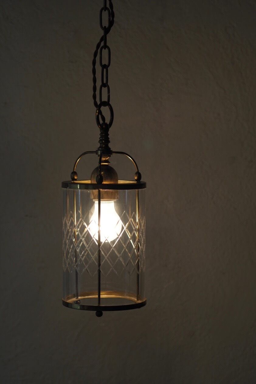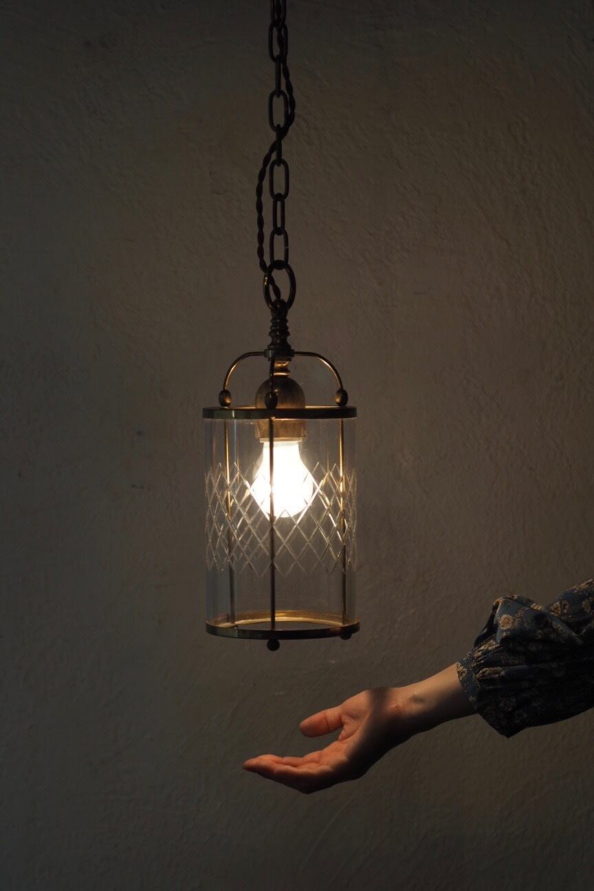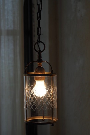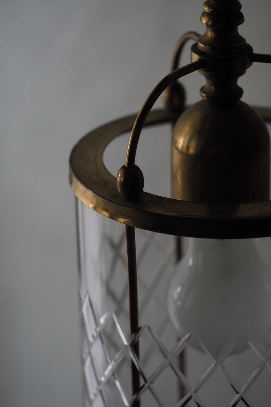 少しノスタルジック。斜めチェックカットが一枚の円筒ガラスにデザインされていてフレンチシックなお部屋にぴったり似合うペンダントランプ。