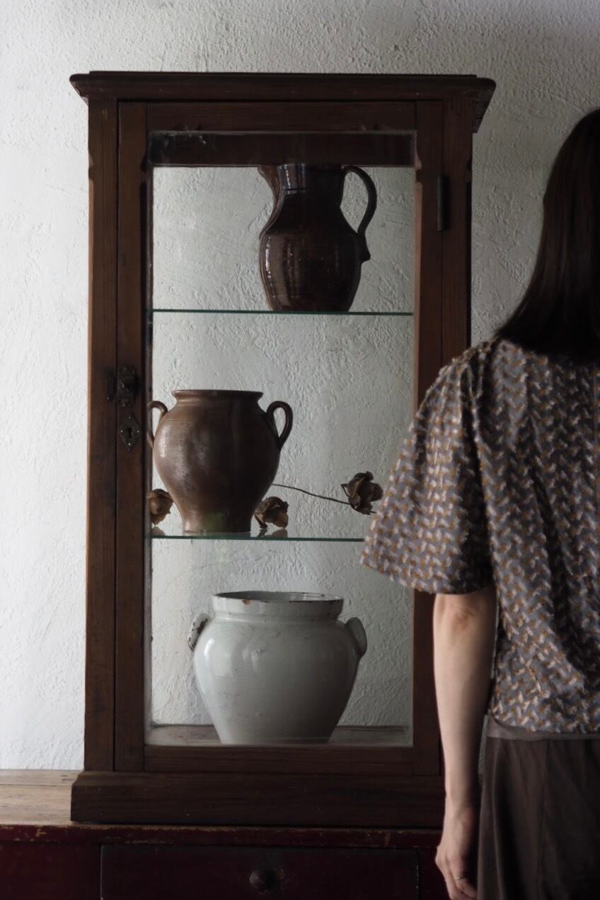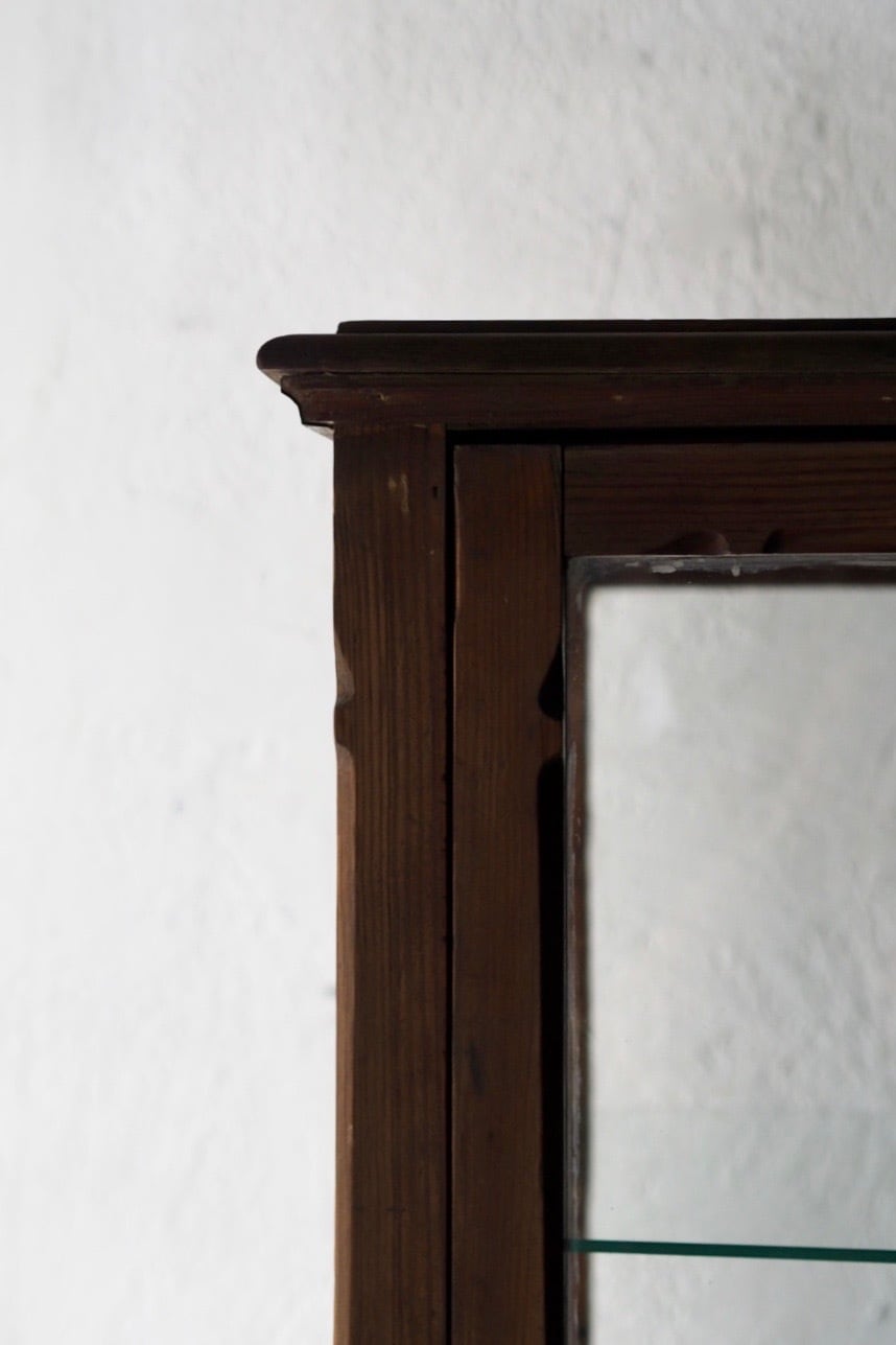 オールドパインの木枠にとても味わいがあり、錆びて固まっている為引っ張るだけの扉金具は長年馴染んだオリジナルのもの。扉に鍵穴有り、鍵は御座いません。扉はしっかりと閉まり勝手に開いてくる事はございません。