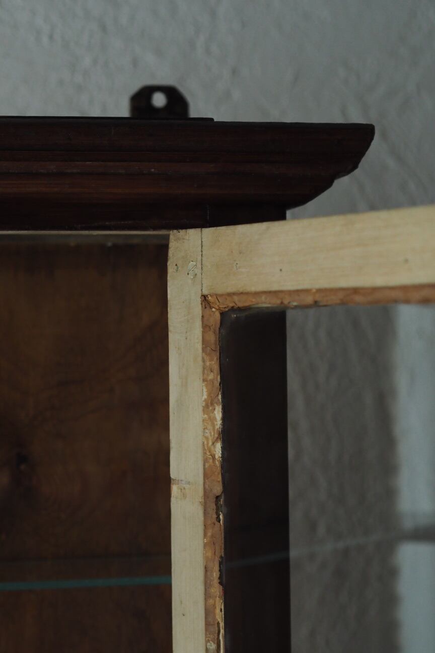 そもそもはショップの壁面に備え付けられていた壁付けのもので背面の底一部がかきこまれている。目線の高さに合わせてディスプレイされていたのだろう。