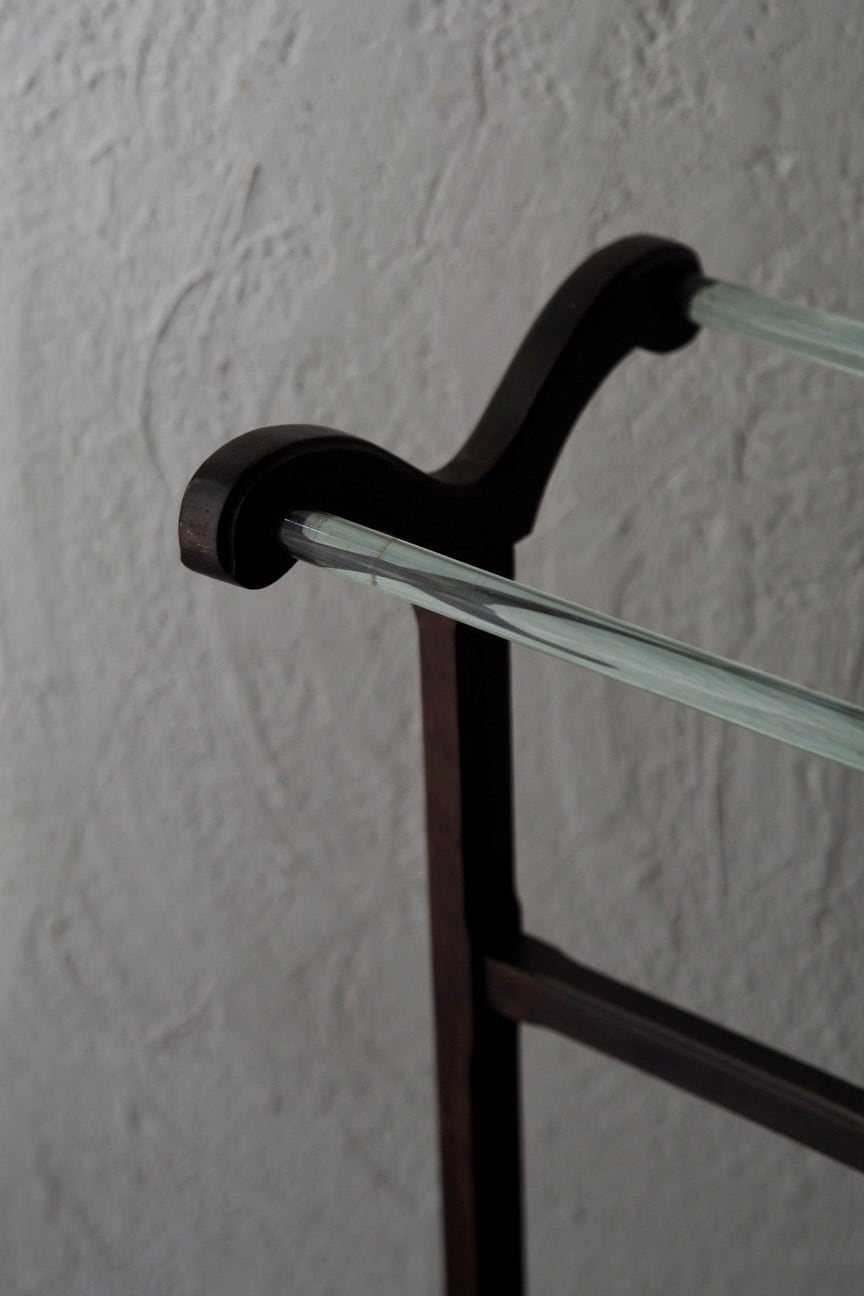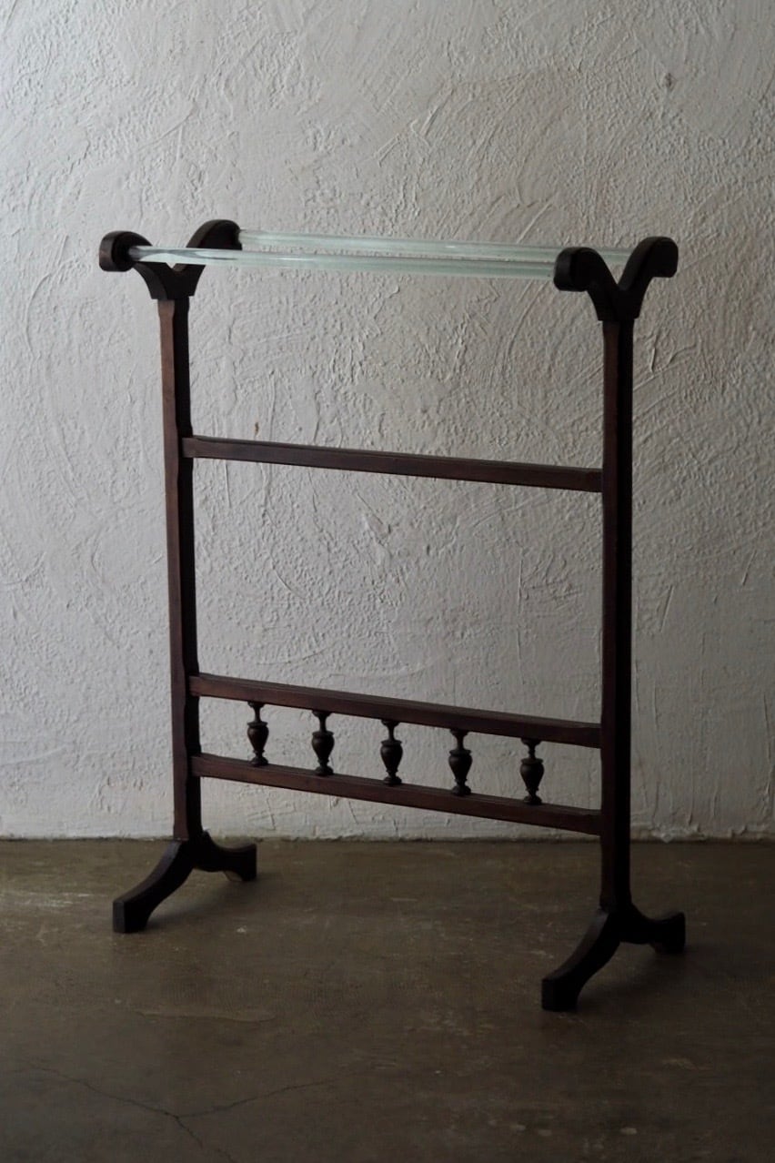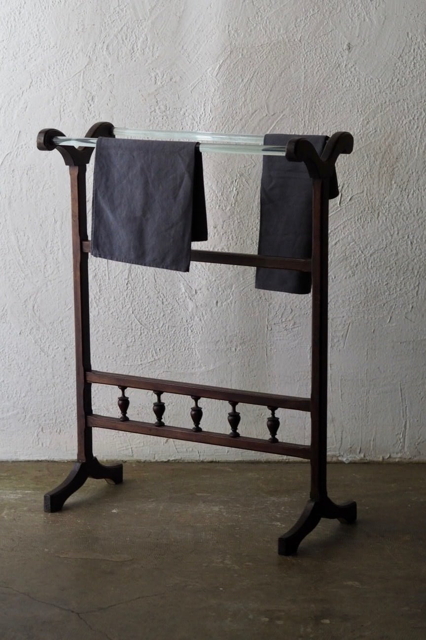 ショップでストールやネクタイを掛けても素敵なクラシカルさと軽やかな雰囲気を感じるデザイン、アクセントに擬宝珠装飾が並ぶ点と、やっぱりガラスの横棒に拠るところも大きい。