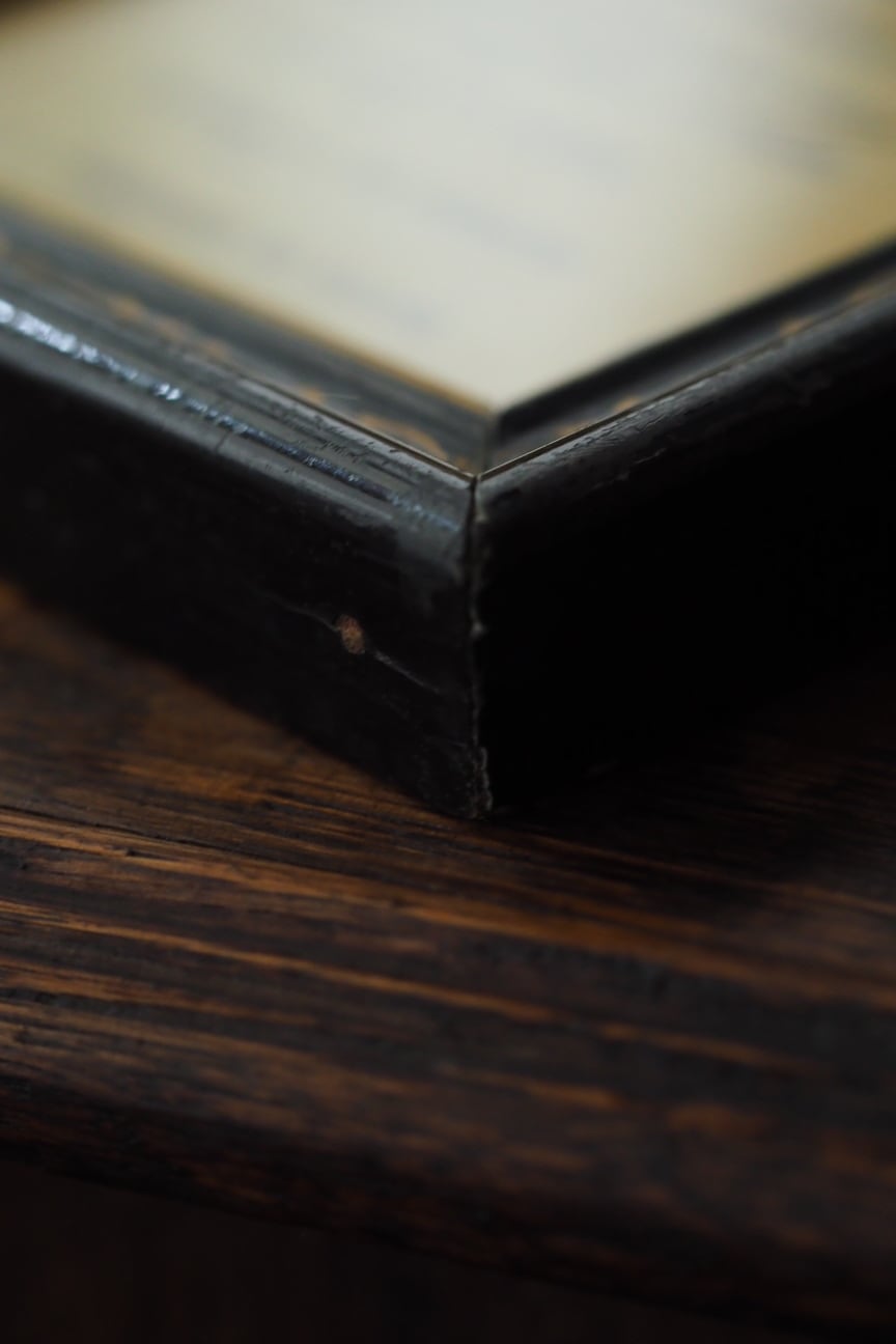シックな黒地のフレーム。オリジナルのガラスも入っている。